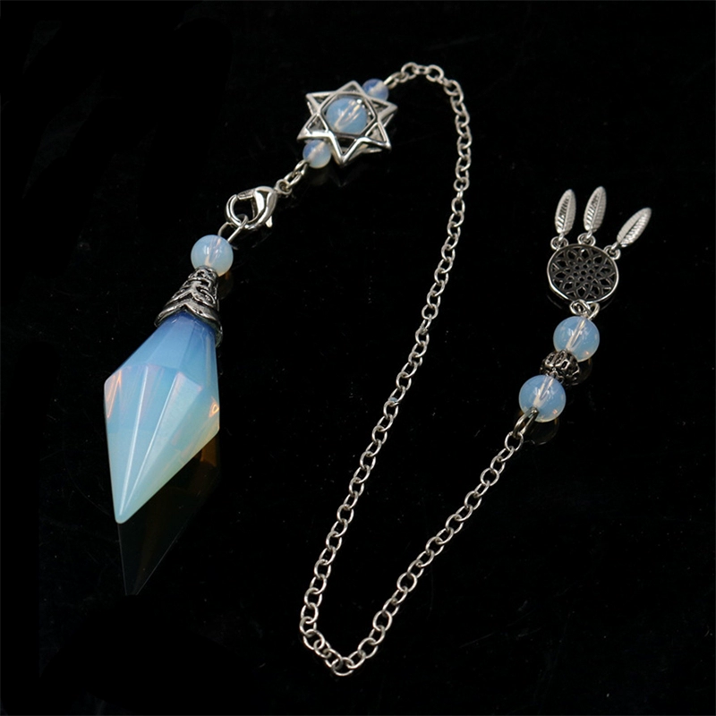 Natural crystal pendulum double-pointed necklace retro opal European and American pendant dream catcher pendulum pendulum FM