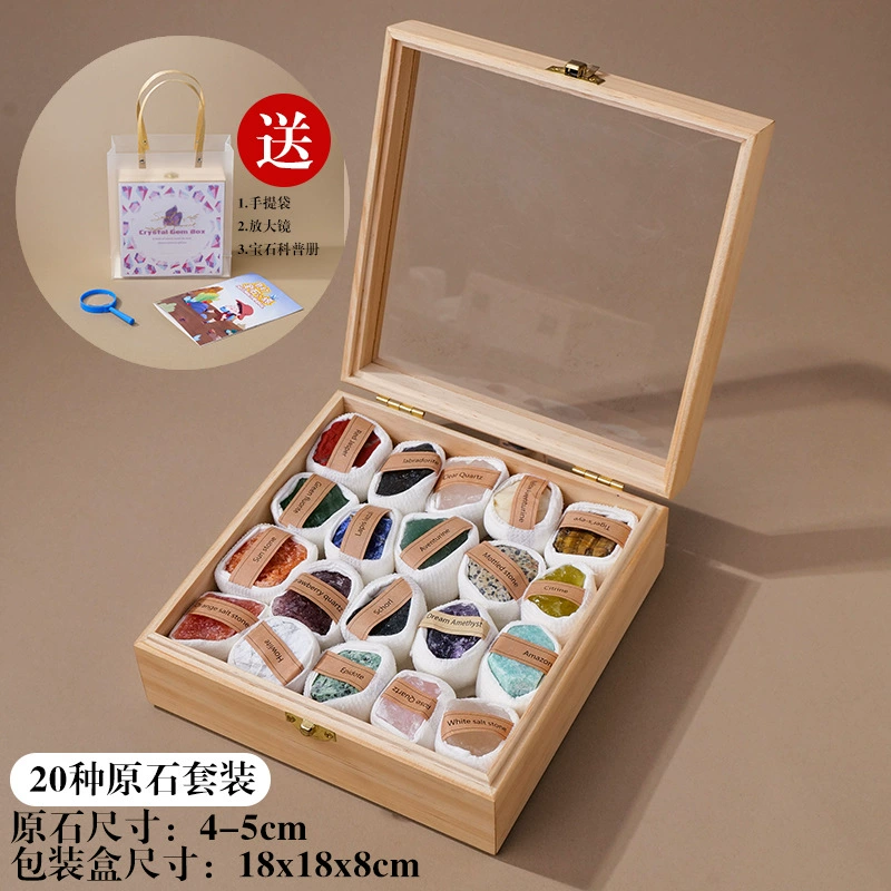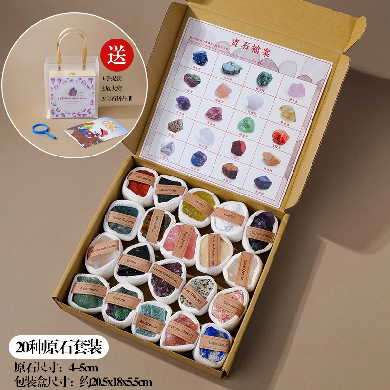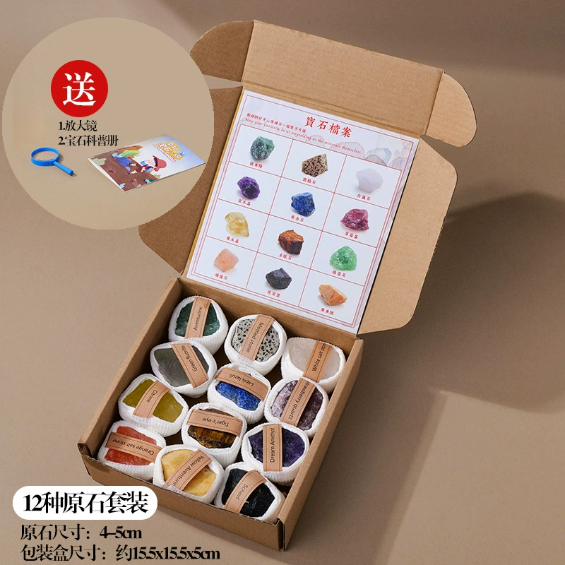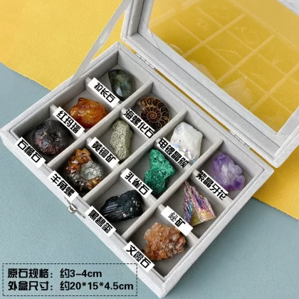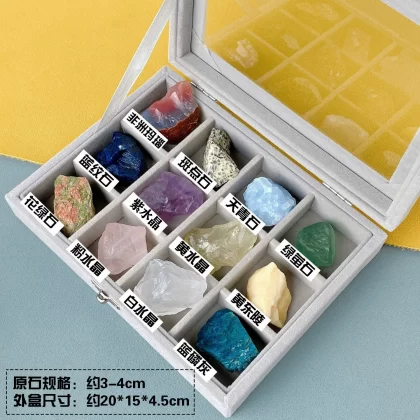 | nameOriginal | Natural crystal raw stone ore gift box set unpolished large particle mineral mark teaching decorative ornaments manufacturer batch |