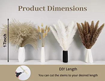 【PREMIUM QUALITY】These genuine truly reed pampas grass are natural, non-toxic and harmless without withering and break easily,which measures about 42 cm to 44cm totally, can be cut freely for various occasions.