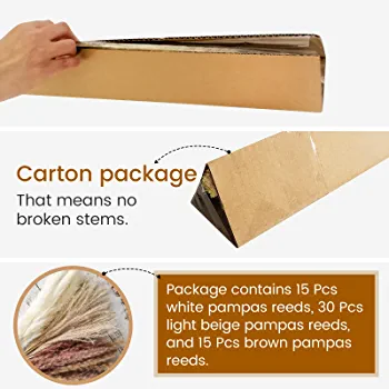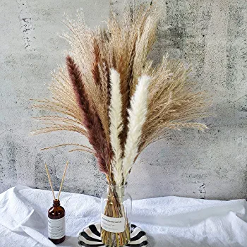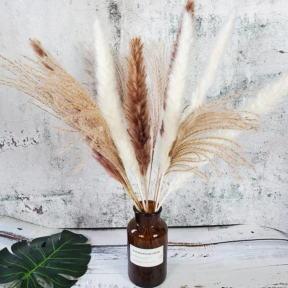 Introducing RbeuFolr Natural Dried Pampas Grass, the perfect addition to your home decor collection. These beautiful brown and white pampas grass stems come in a set of 60 pieces, providing you with plenty of options to create stunning arrangements.