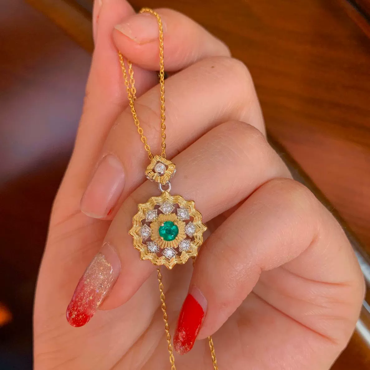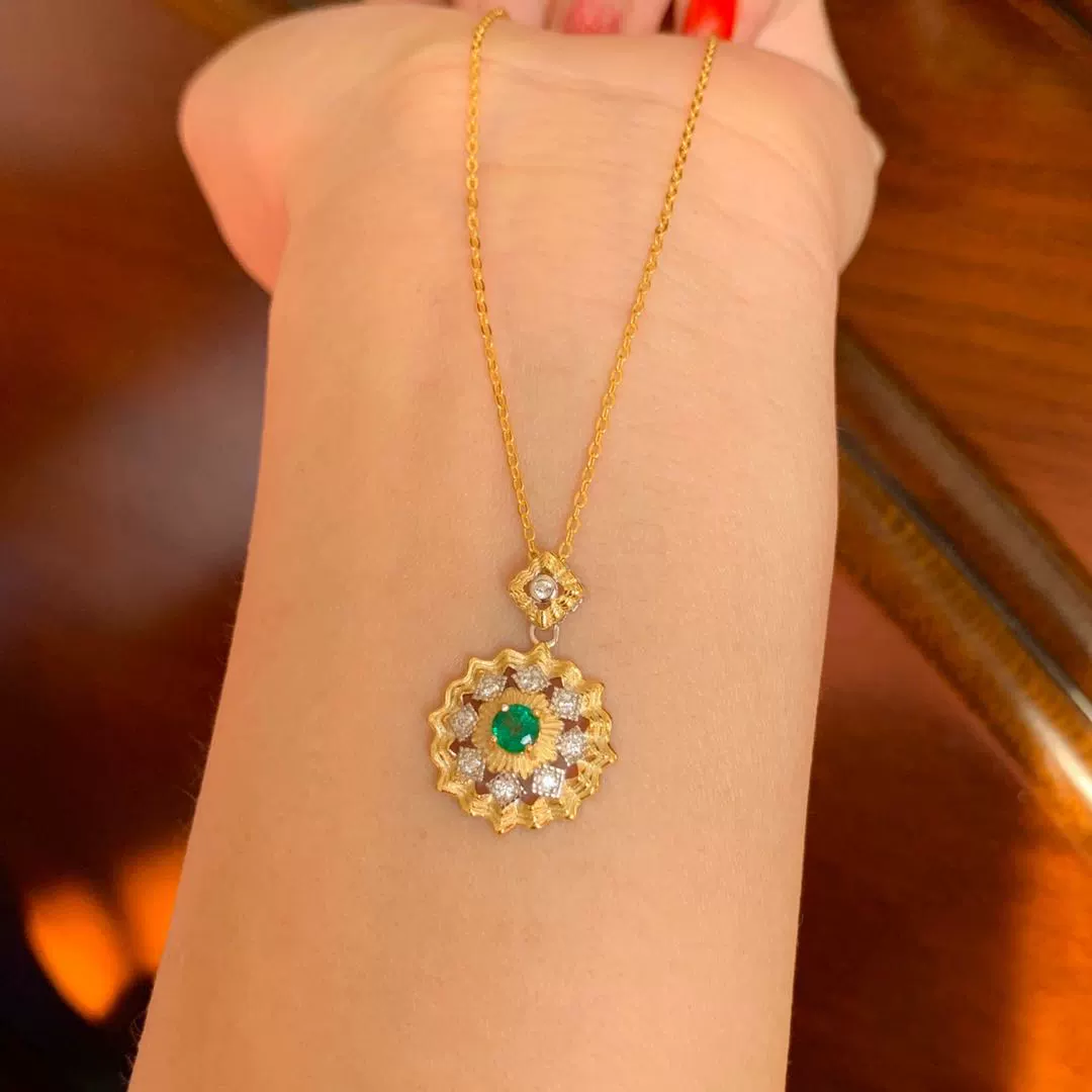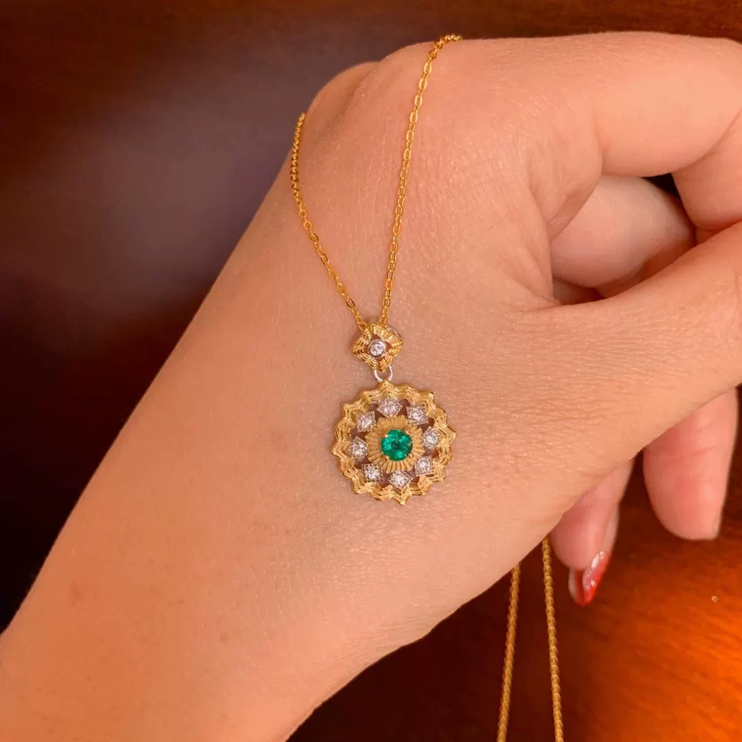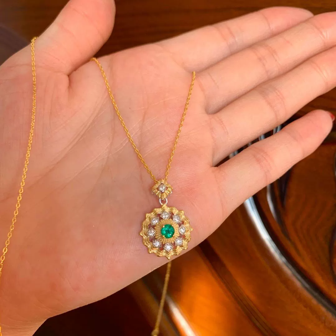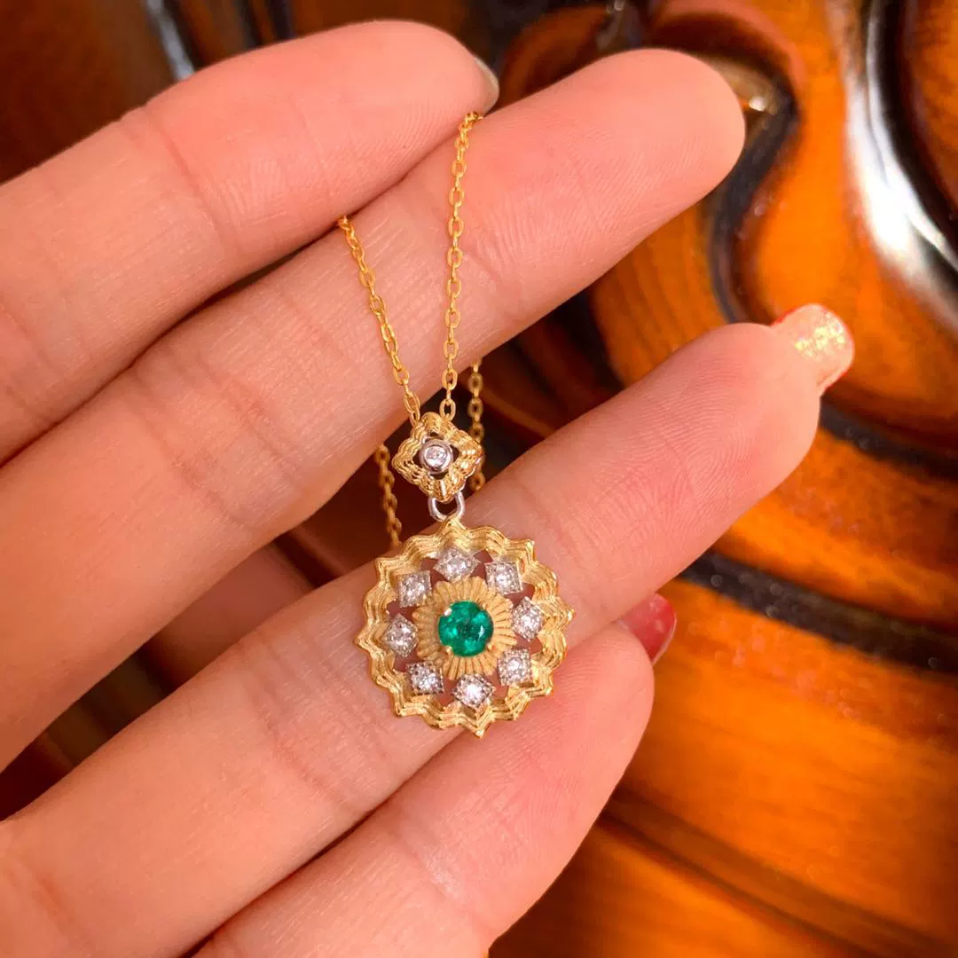 | nameOriginal | Natural emerald pendant, good color, exquisite inlay, main stone 3.5*3.5Mm milk green |