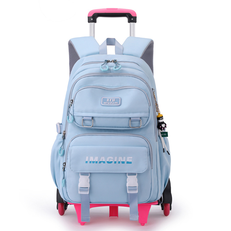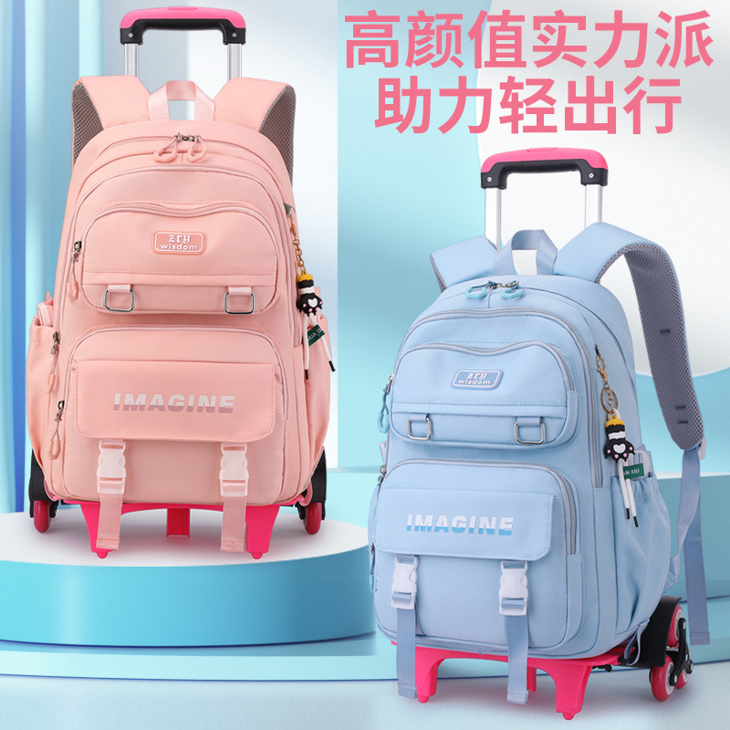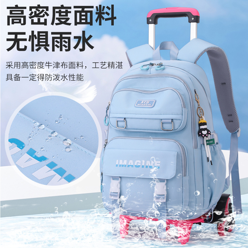 Natural fish girls' waterproof stair climbing trolley schoolbag primary school student large capacity removable schoolbag Grade 3-6