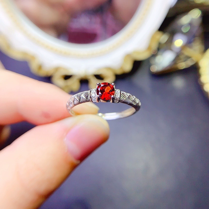 | nameOriginal | Natural garnet ring 925 silver gold plated inlaid 5*5mm open ring |