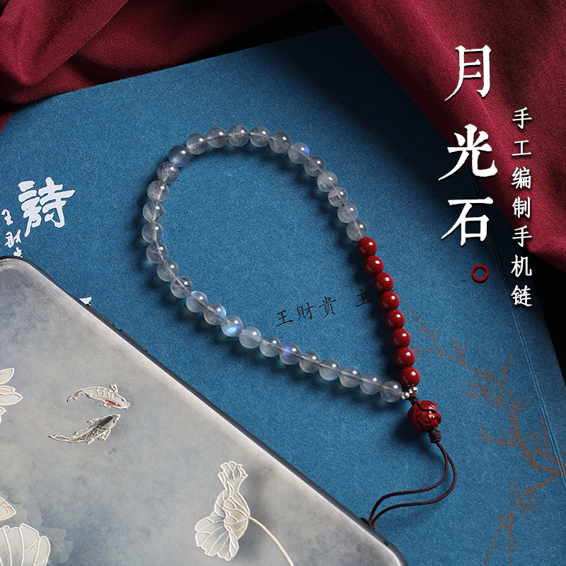 | nameOriginal | Natural gray moonstone mobile phone chain pendant for men and women high-end exquisite purple gold sand mobile phone case lanyard anti-loss pendant chain |