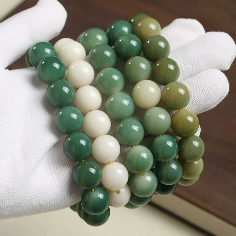 | nameOriginal | Natural green floating bodhi root beads around the finger soft single circle bracelet white jade bodhi root bracelet for men and women in the garden |