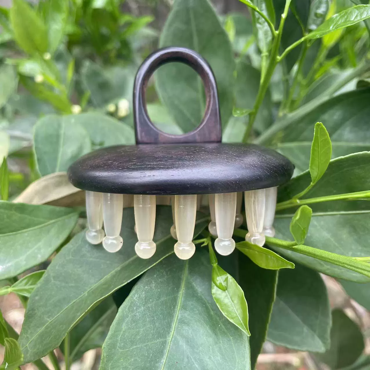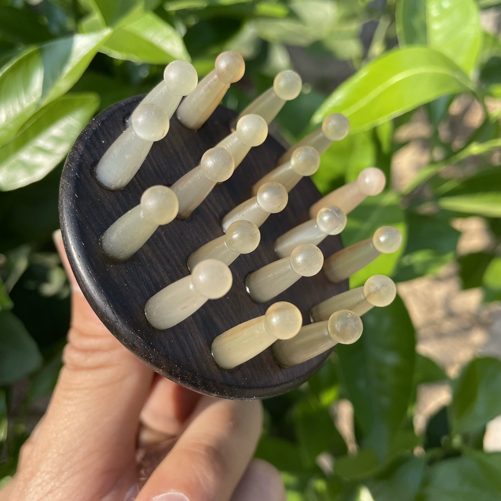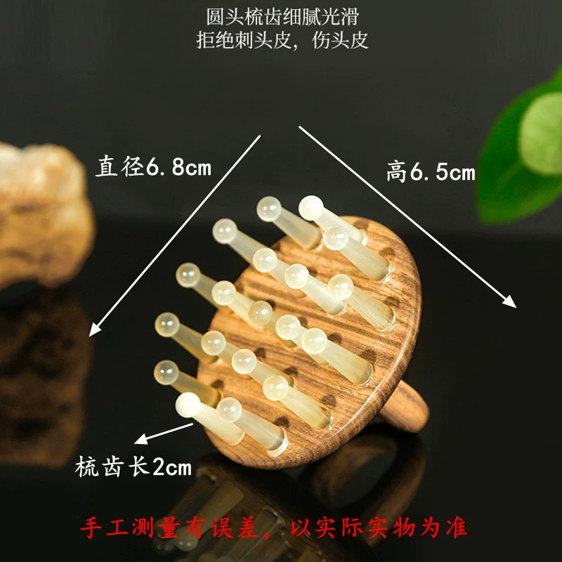 Natural green sandalwood horn comb head massage comb scalp ring cleaning meridian care massage therapy for women and men