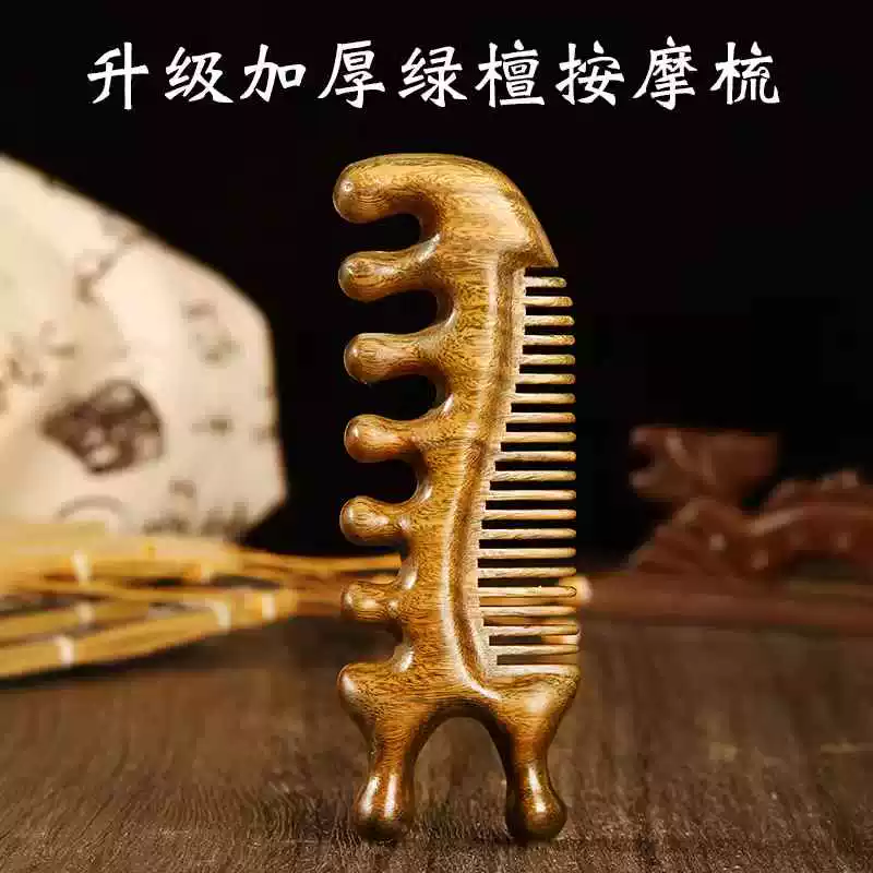 | nameOriginal | Natural green sandalwood massage comb head meridian comb for women's scalp therapy to clear eyes and nose five-tooth comb for men |