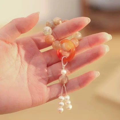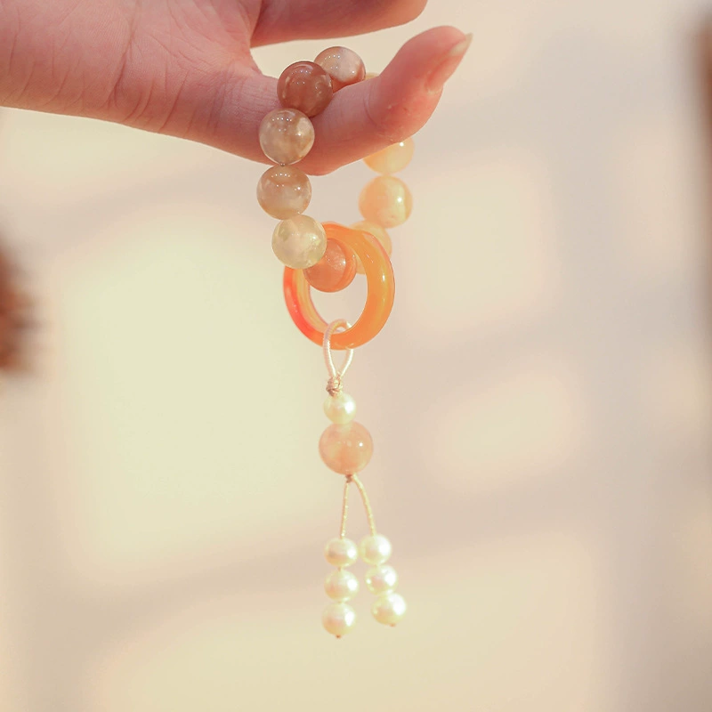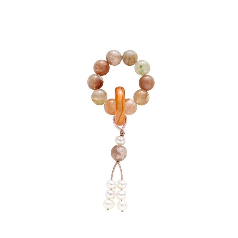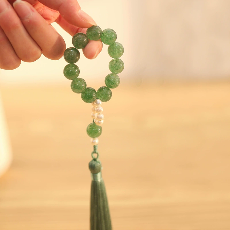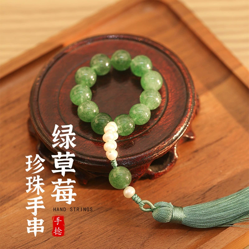 Natural green strawberry crystal small hand-twisted tassel cherry blossom agate hand-wrapped fingertip toy bracelet Chinese style bracelet
