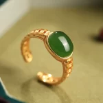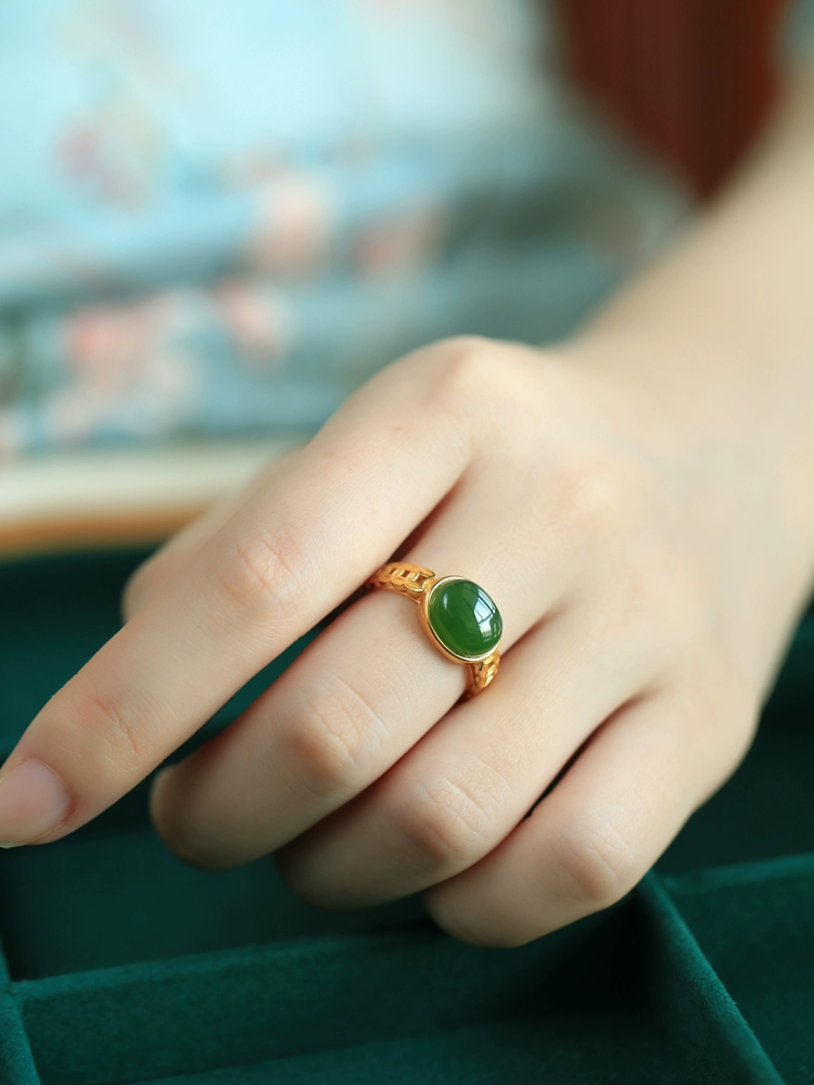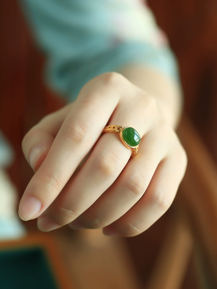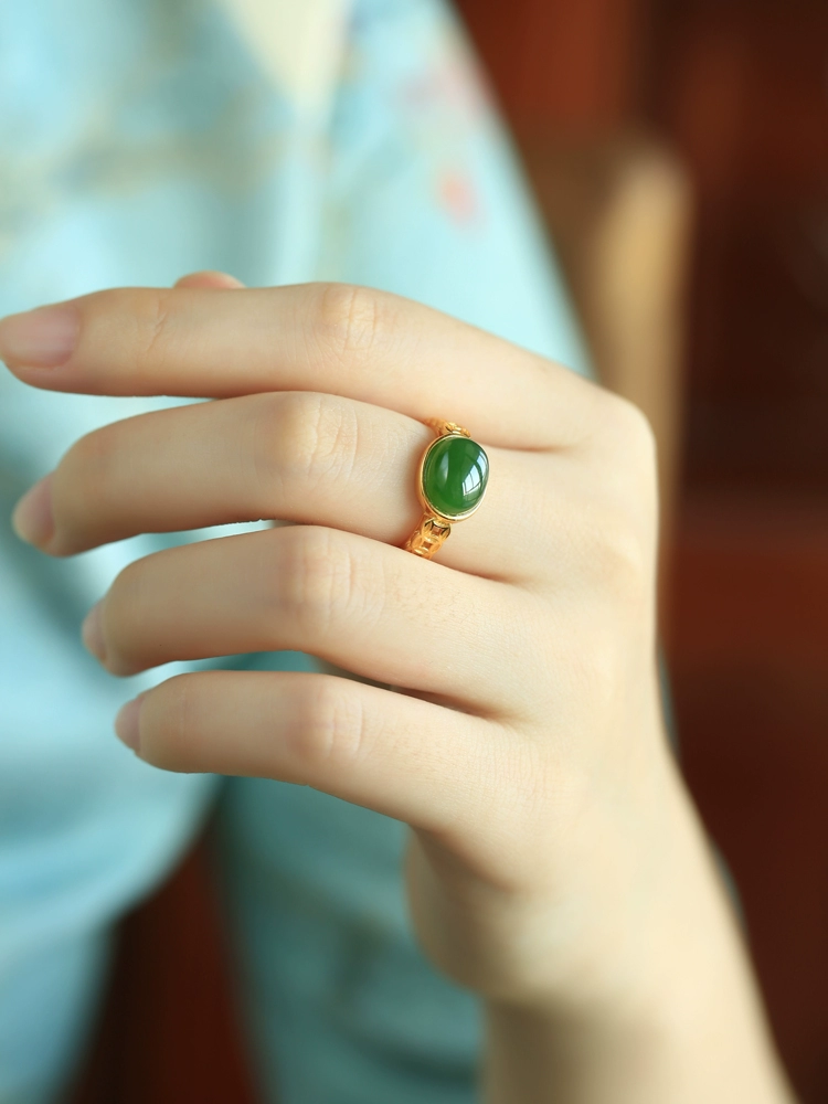 | nameOriginal | Natural Hetian jade jasper egg surface sterling silver copper coin ring for women, light luxury and high-end sense 18k gold-filled jade gold inlaid jade |