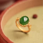 Natural Hetian jade jasper egg surface sterling silver open ring for women, light luxury and high-end 18k gold-packed jade emerald