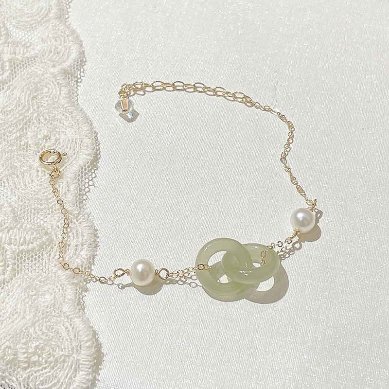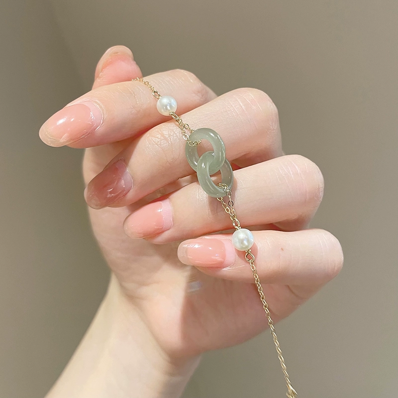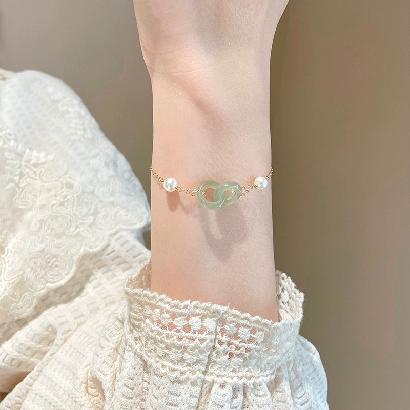 | nameOriginal | Natural Hetian jade safety buckle bracelet for women interlocking pearl jade jade bestie ins niche design |