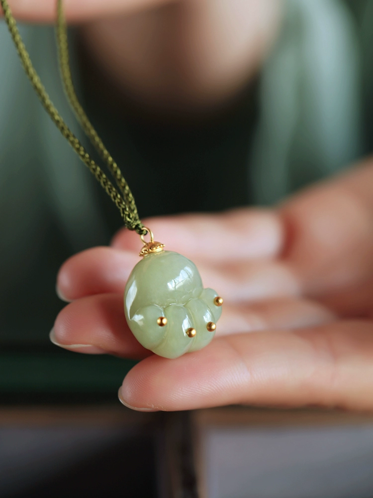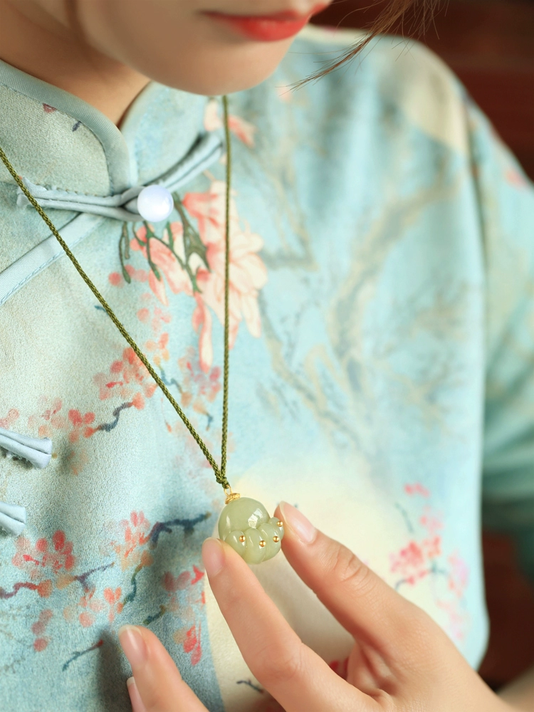Natural Hetian jade sapphire sterling silver cat claw rope pendant women’s braided rope lanyard necklace women’s jade long sweater chain