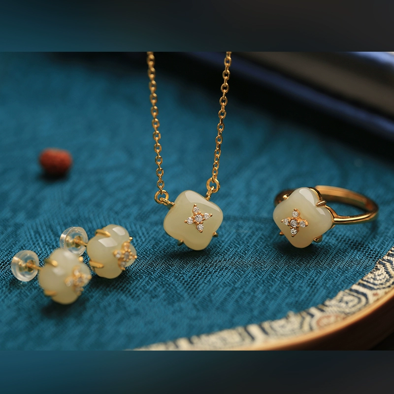 | nameOriginal | Natural Hetian jade sterling silver 18k gold-filled four-leaf clover pendant for women, jade gold inlaid jade necklace for women, light luxury niche |