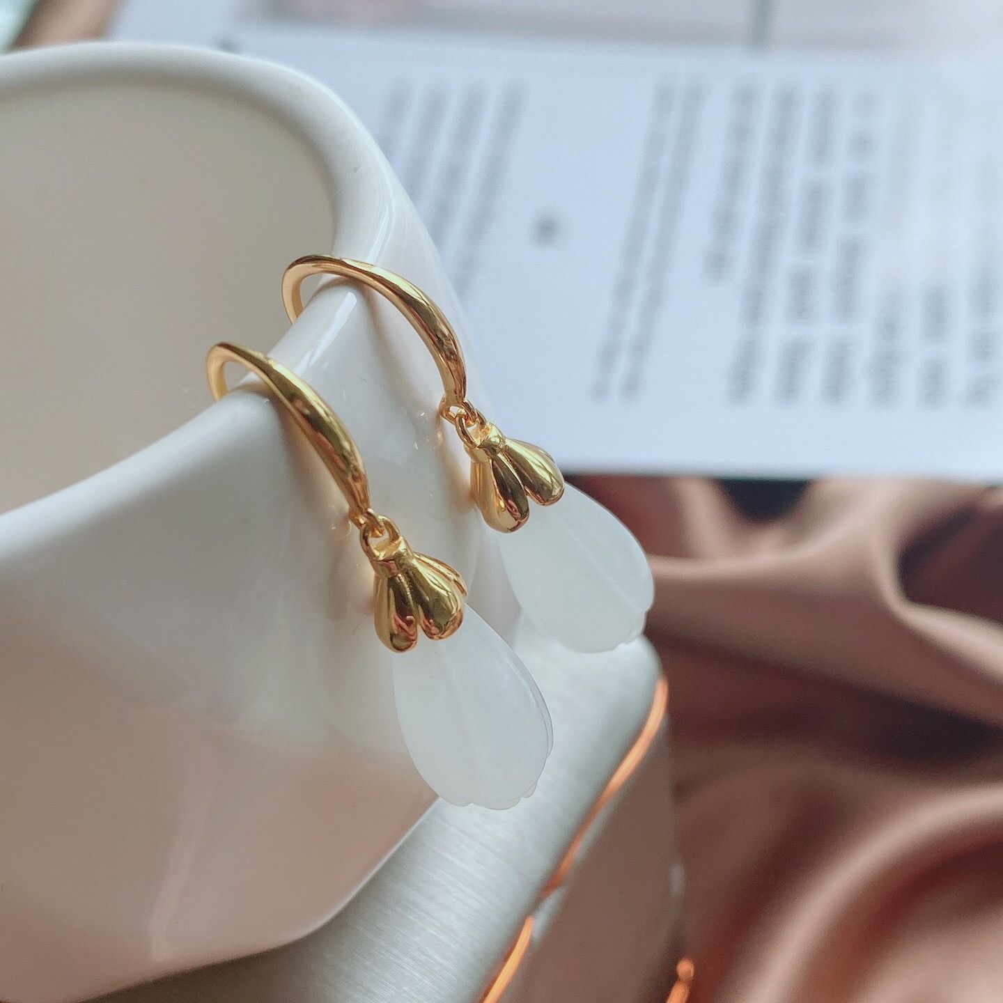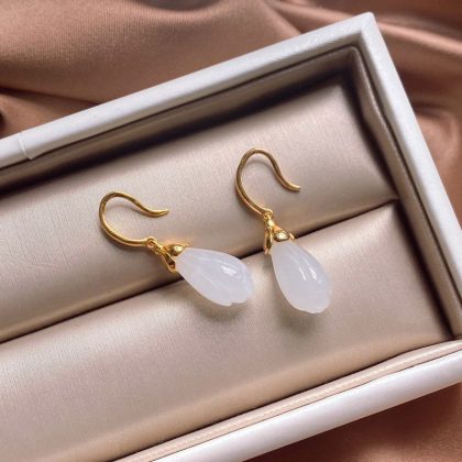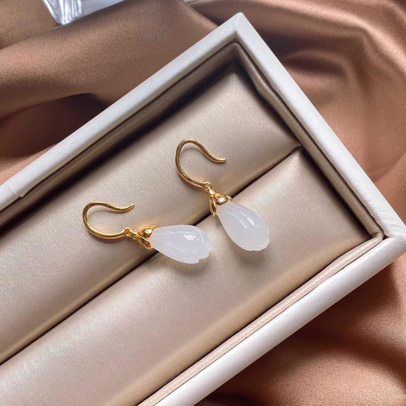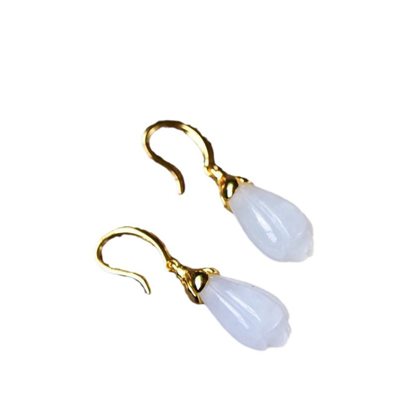 Natural Jade White Jade Forbidden City New s925 Sterling Silver Gold-plated Ancient Golden Orchid Craft Simple Atmospheric Delicate Fairy