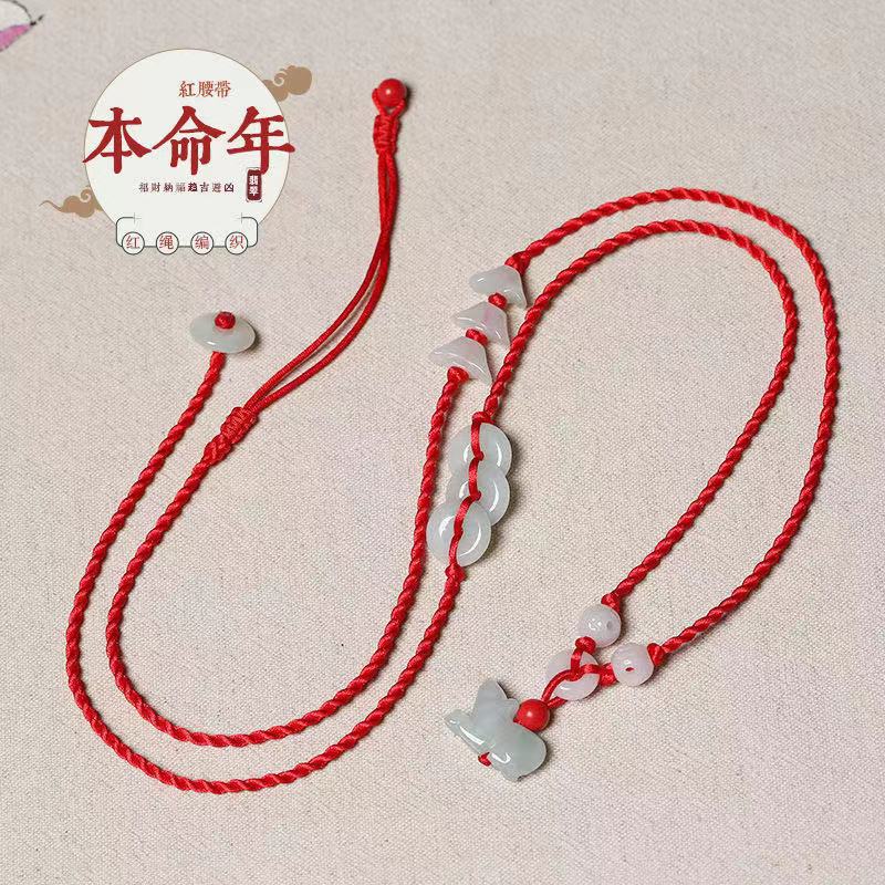 | nameOriginal | Natural jade woven red rope belt this year of life 12 zodiac jade red waist chain jewelry wholesale can be identified |