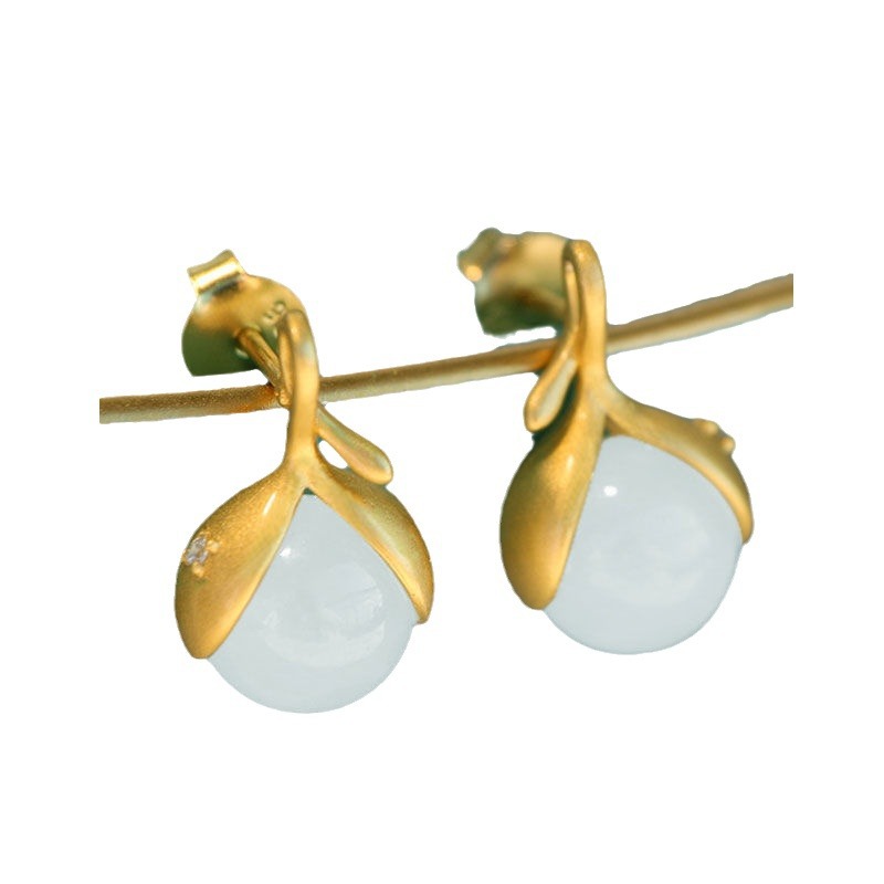| nameOriginal | Natural Jasper Forbidden City New Ancient Method Gold Earrings Bud Small and Exquisite Simple Elegant Mori Girl Earrings for Gift |