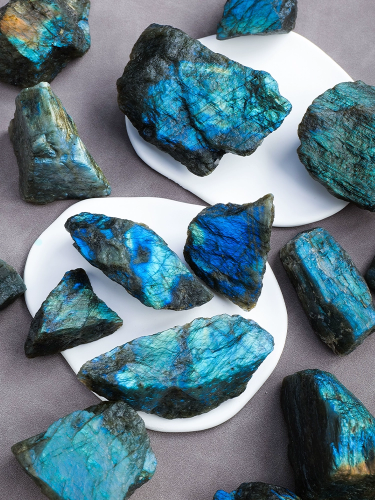 Natural labradorite rough stone ornaments, gray moonstone crystal ore specimens, aroma diffuser, stone fish tank, flower pot landscaping