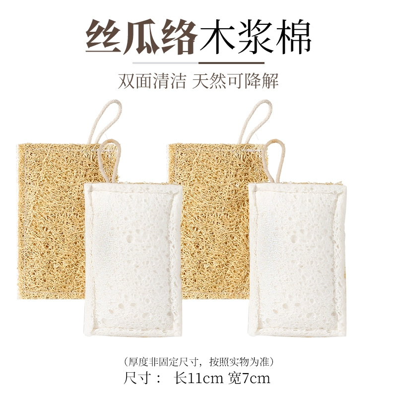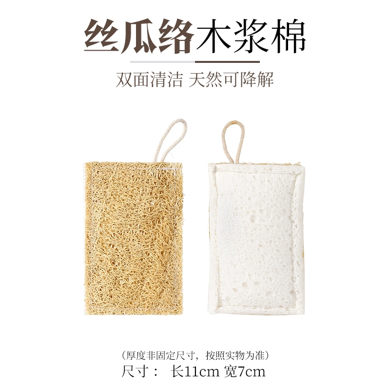 Natural loofah flesh wood pulp cotton double-sided cleaning pot and dishwashing loofah kitchen scouring pad household loofah sac brush