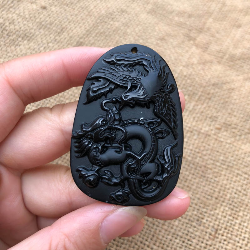 | nameOriginal | Natural obsidian dragon and phoenix dancing jade pendant transfer body protection jade dragon and phoenix auspicious couple necklace with certificate |