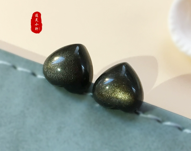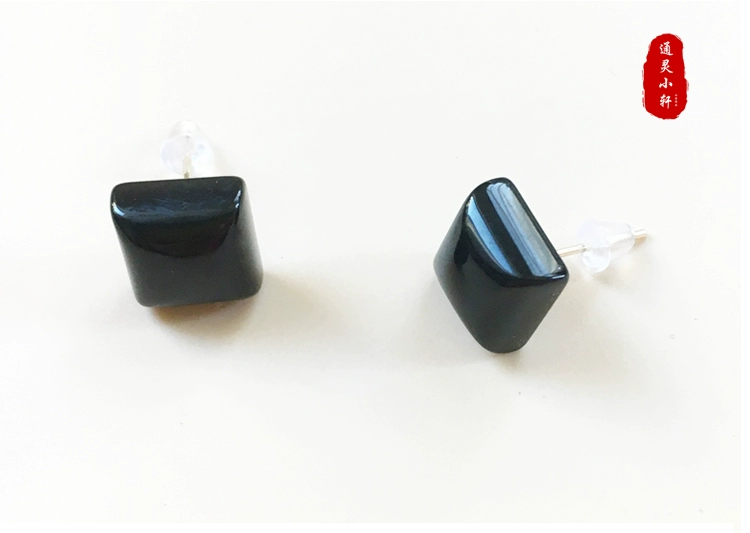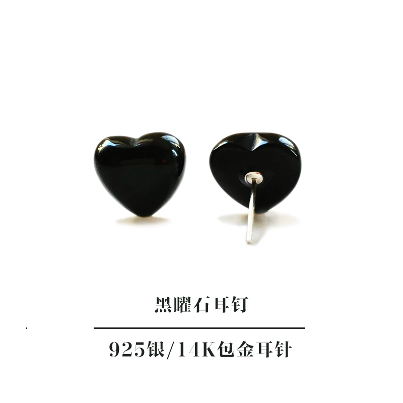 Natural obsidian earrings heart-shaped pendant S925 sterling silver crystal peach ring needle love men and women square simple fashion retro
