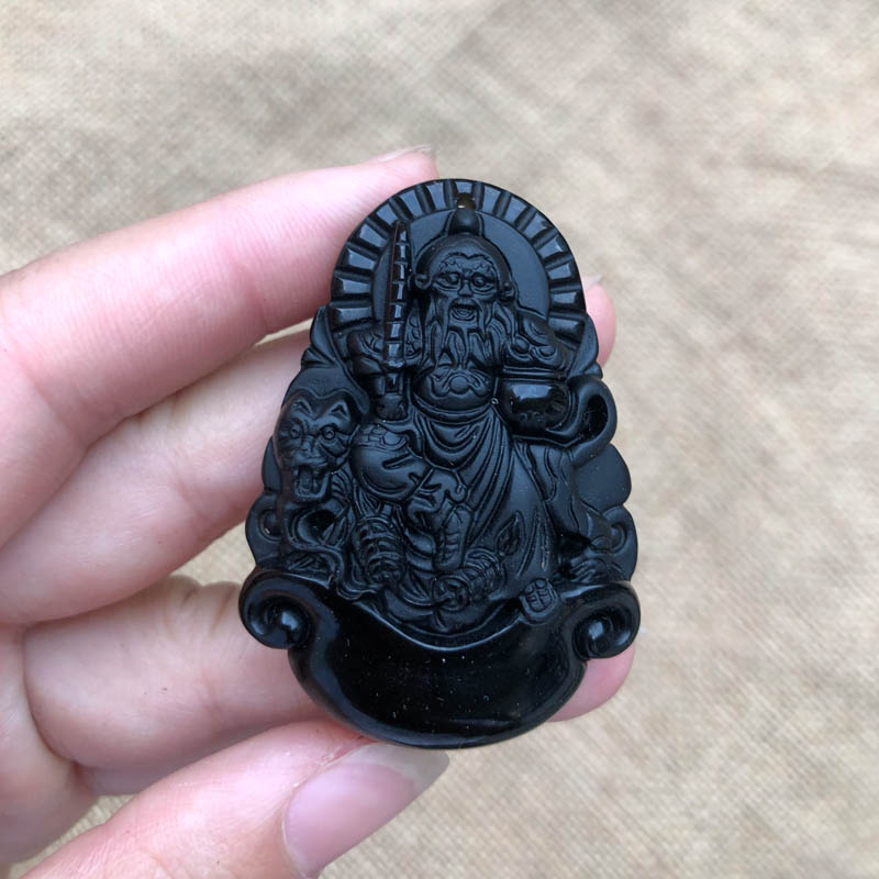 Natural obsidian Sitting Tiger God of Wealth Pendant for transportation, protection and wealth Zhao Gongming God of Wealth Jade Pendant with Certificate