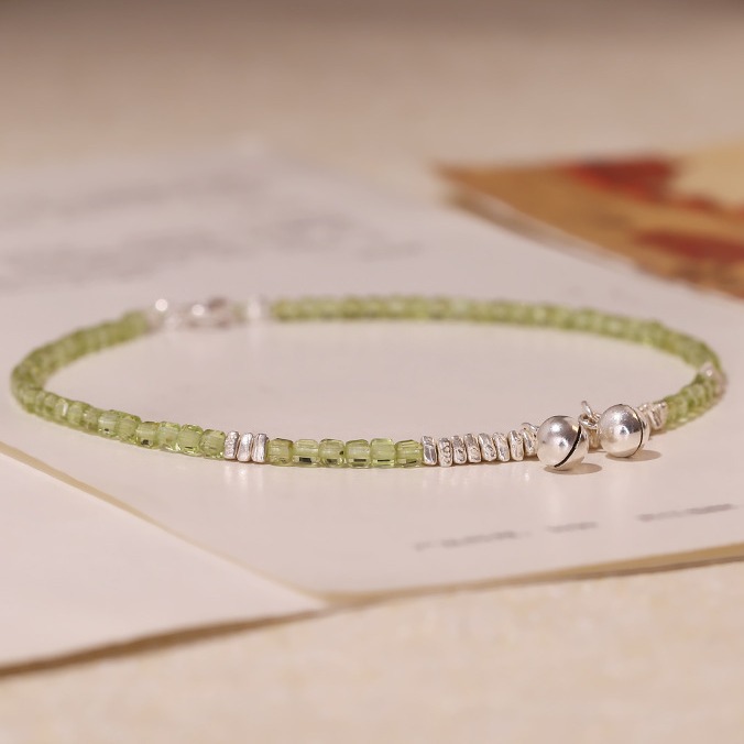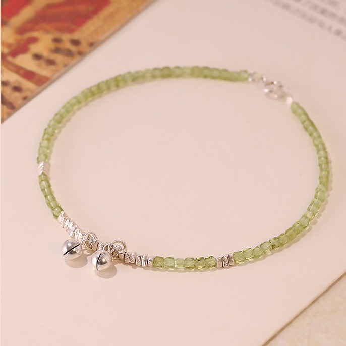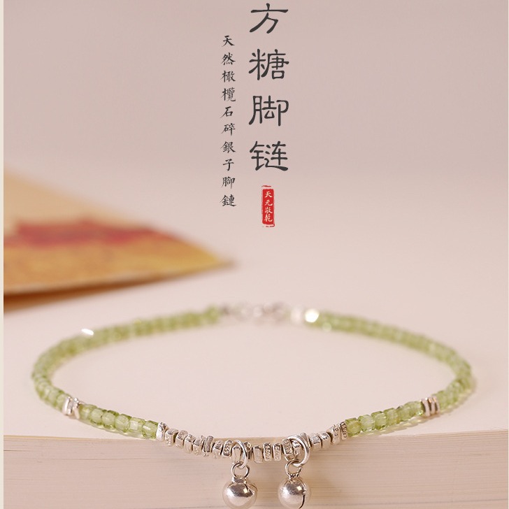 | nameOriginal | Natural Olivine Anklet Thin Women's Square 2mm Bell S925 Sterling Silver Spring Buckle Bracelet National Style |