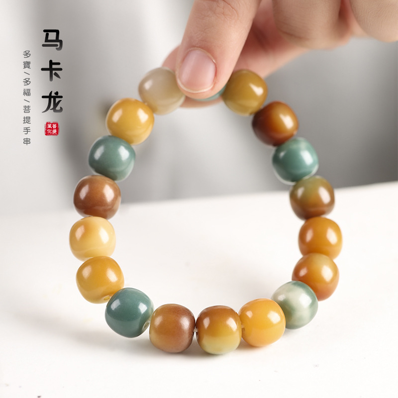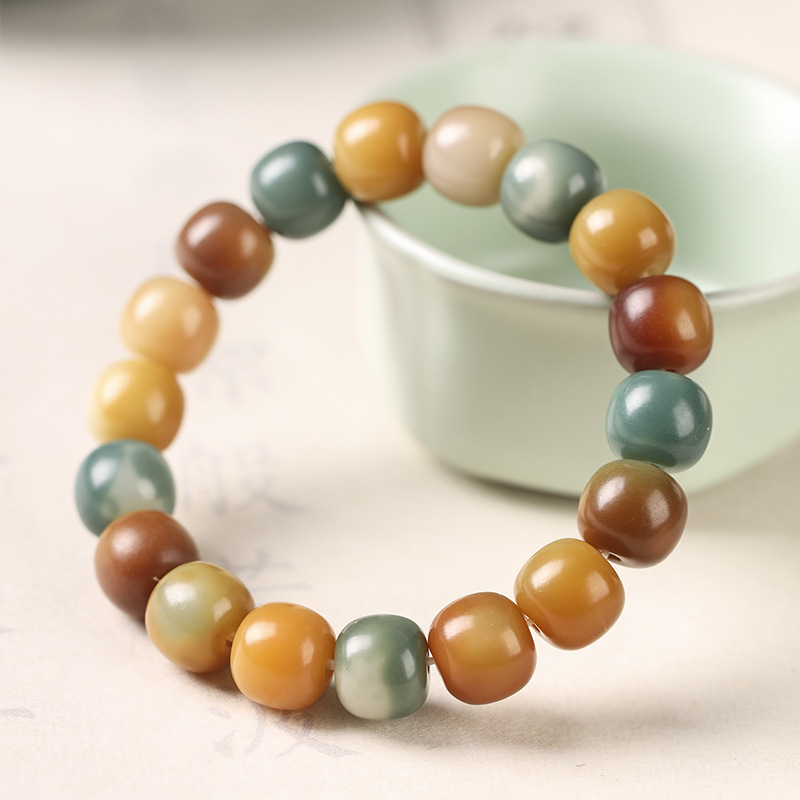 Natural Original Ecology Colorful Duobao Bodhi Root Rosary Wrap Finger Soft Men’s and Women’s Tray to Play Macaron Color Single Circle Bracelet