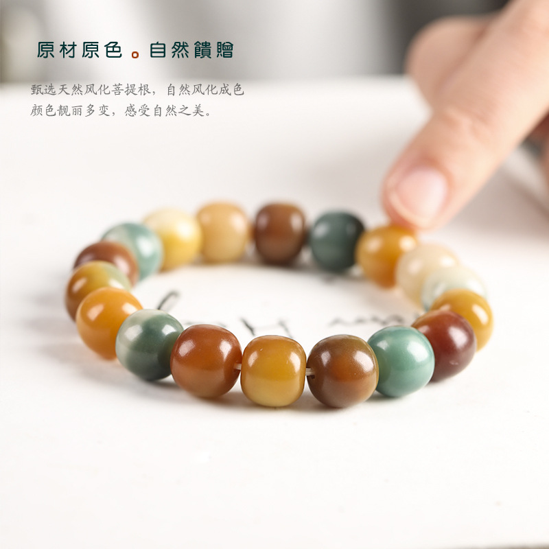 Natural Original Ecology Colorful Duobao Bodhi Root Rosary Wrap Finger Soft Men's and Women's Tray to Play Macaron Color Single Circle Bracelet