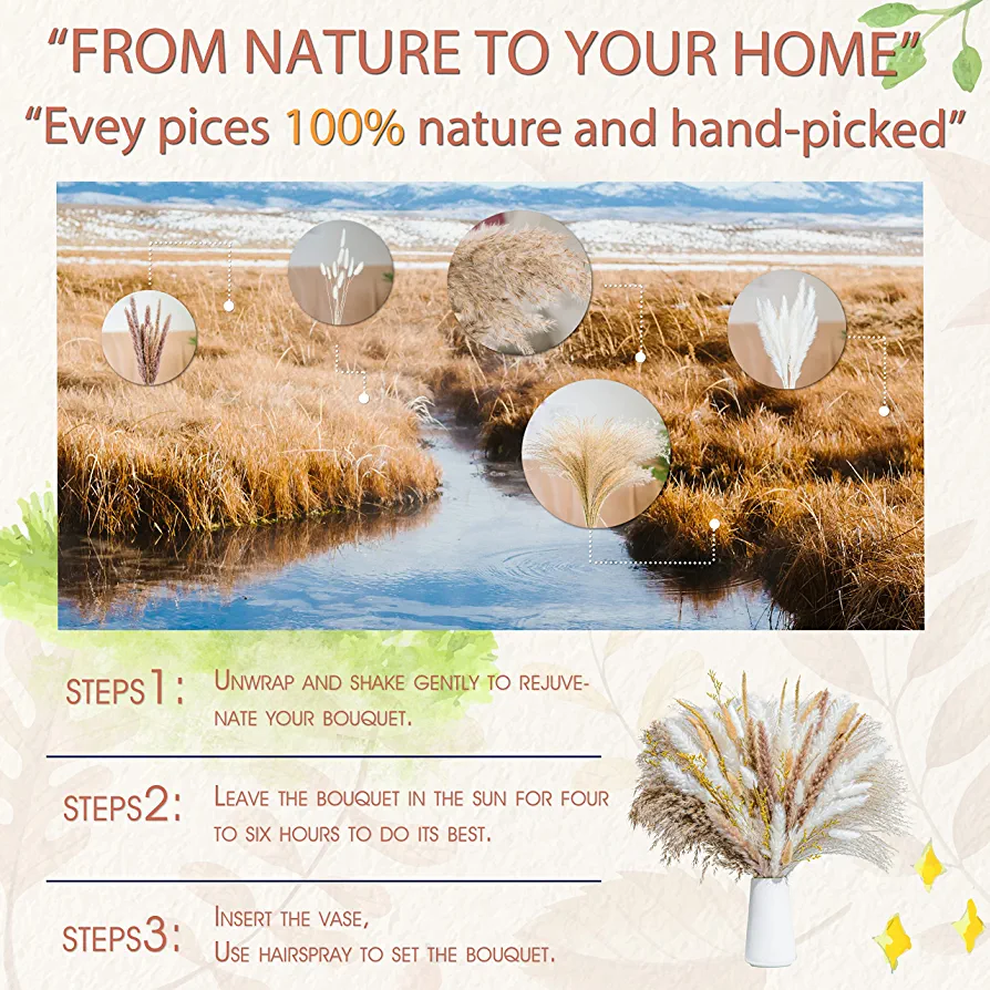 | nameOriginal | 82PCS Natural Pampas Grass Bouquet, Boho & Western Wedding Decor Flowers – Dried Pampas Grass Decor for Elegant Floral Arrangements, Home & Table Decorations |