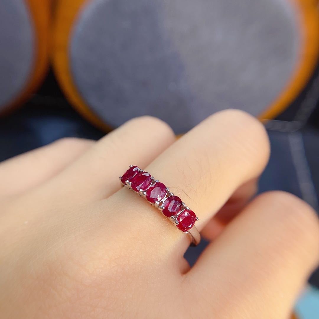 Natural pigeon blood red ruby ​​ring 925 silver precision inlaid 3*4mm open ring