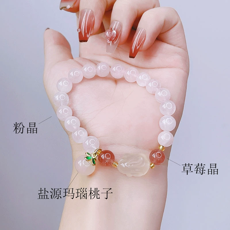 | nameOriginal | Natural pink crystal bracelet for women, cute chalcedony, salt source, agate, peach, strawberry crystal, beaded bracelet, hand jewelry |