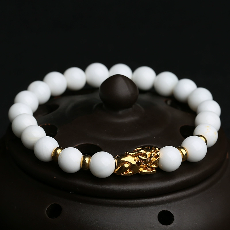 Natural pure white shell bead bracelet for men and women single circle gold Pixiu accessories bracelet ethnic style crystal gift jewelry