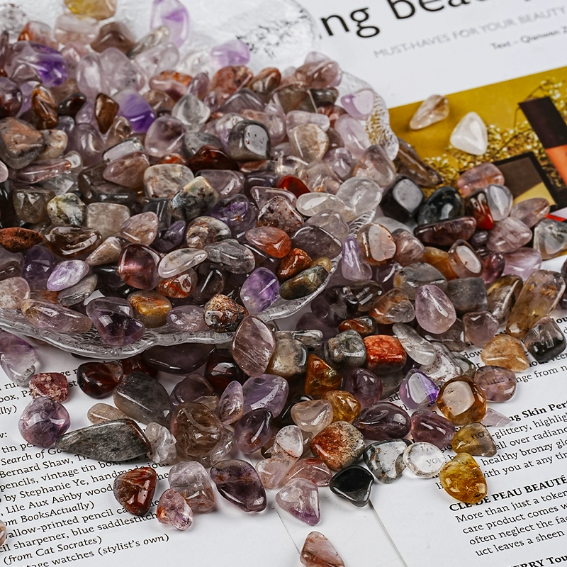 Natural purple-yellow crystal gravel ornaments Aurora 23 raw stone bracelet degaussing purification fish tank flower pot landscaping