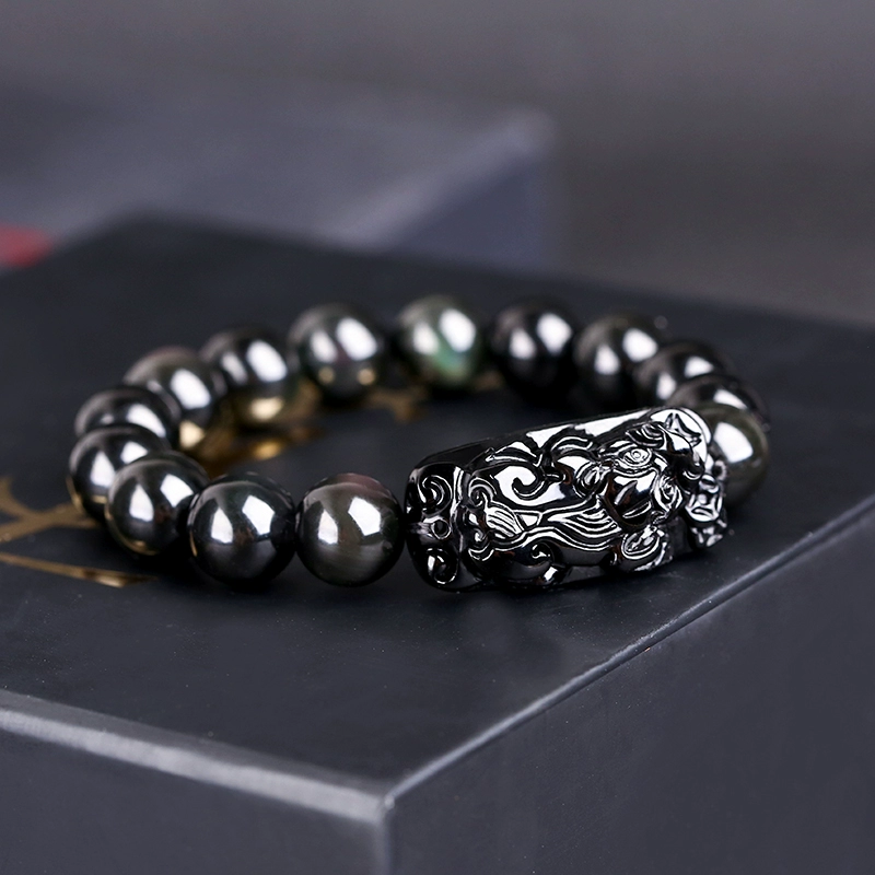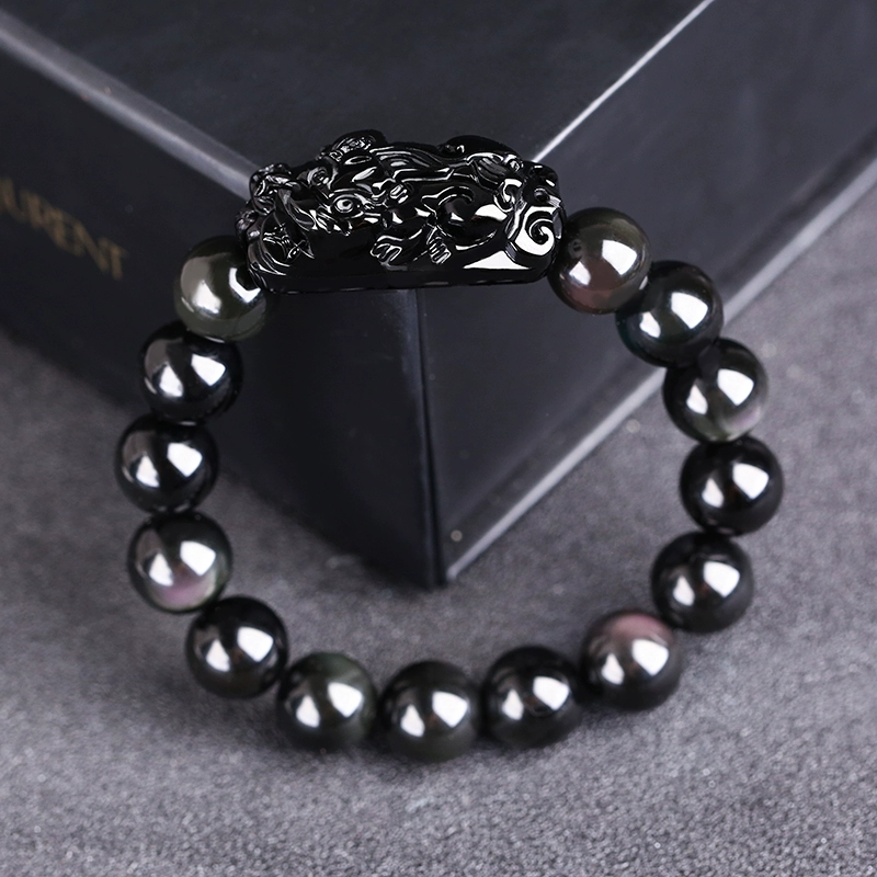 Natural rainbow eye obsidian Pixiu crystal bracelet bracelet personality trend men’s atmospheric birthday gift jewelry