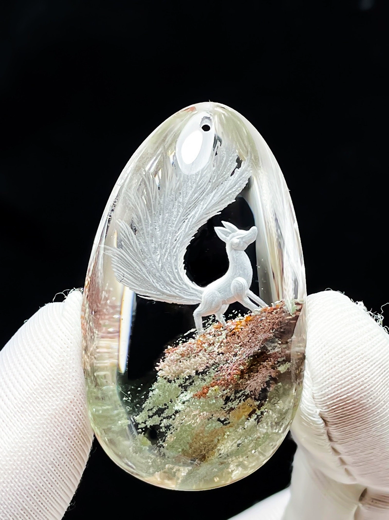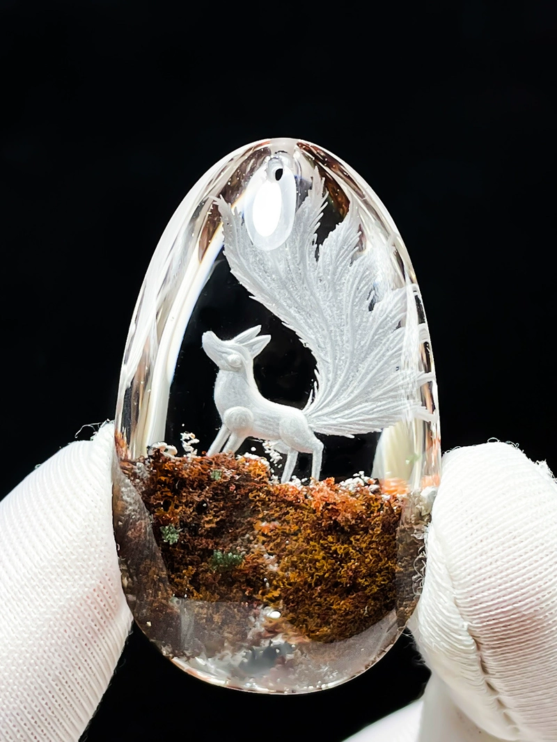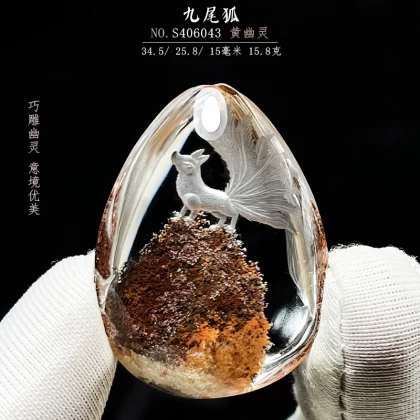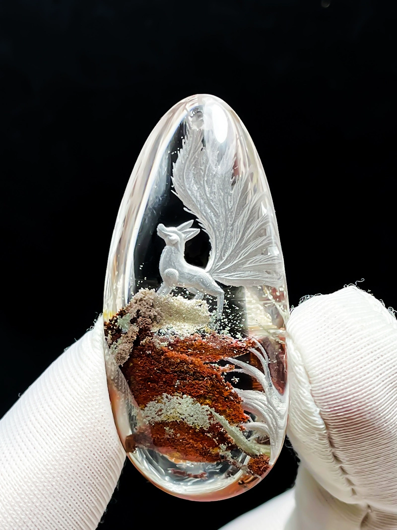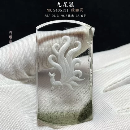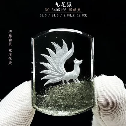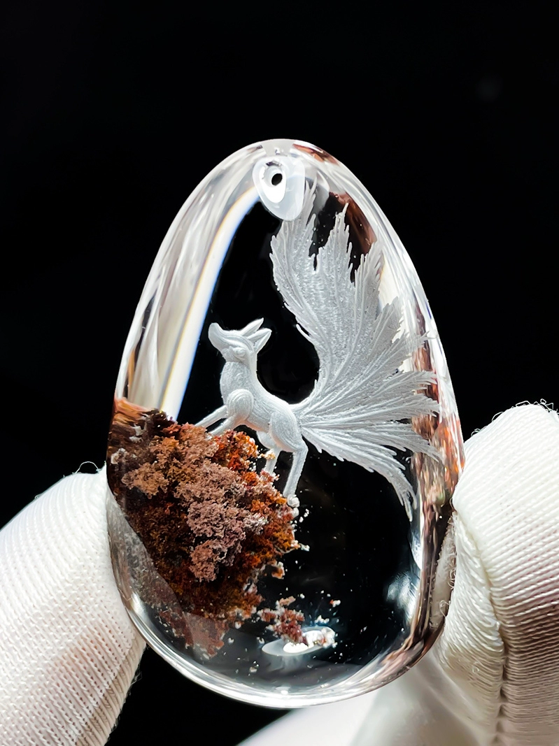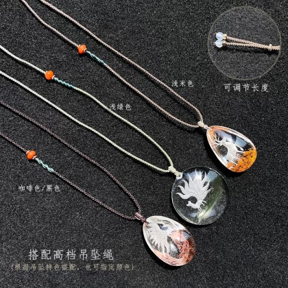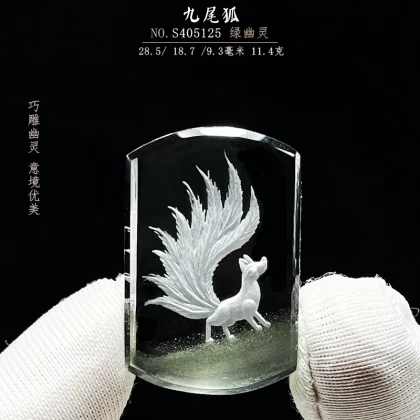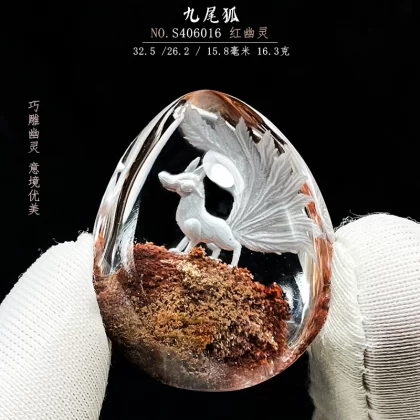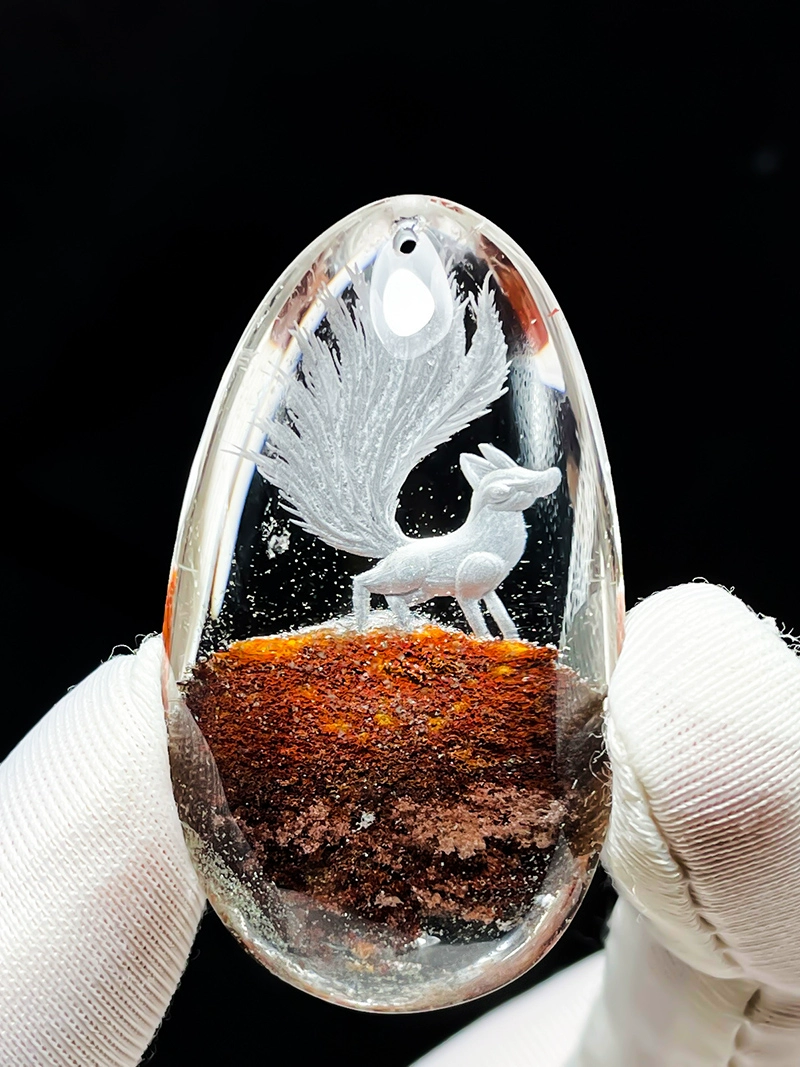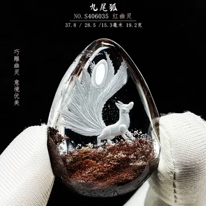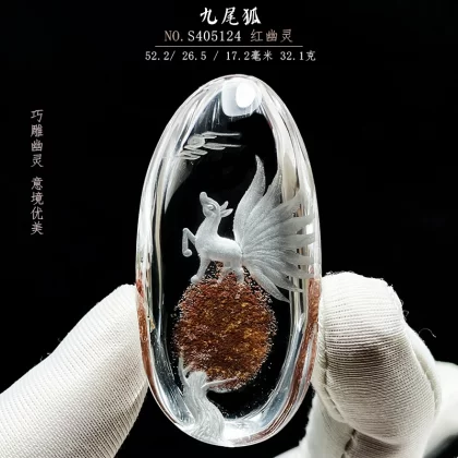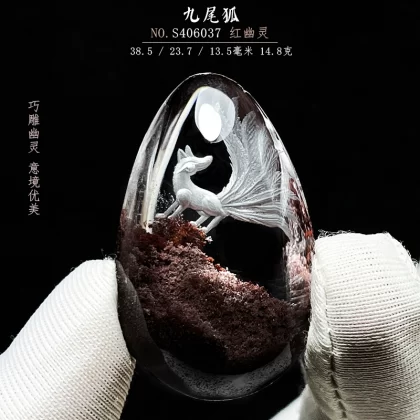 Natural red and green ghost fox pendant nine-tailed fox crystal necklace red ghost red rabbit hair crystal red glue flower gift