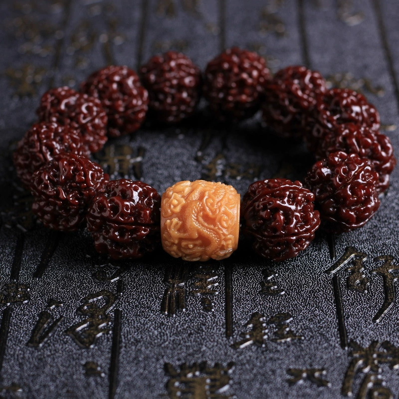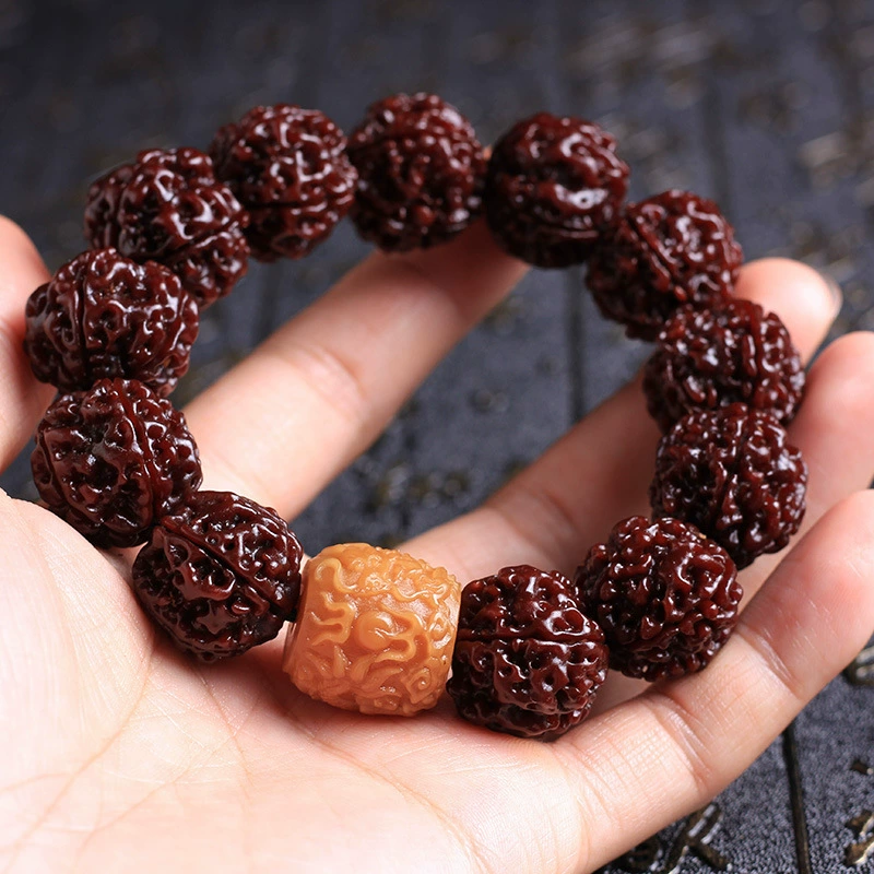 Natural Rudraksha bracelets for men, wild five-petal bodhi seed rosary, safety buckle, and fun beads