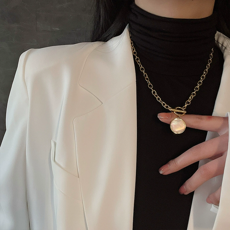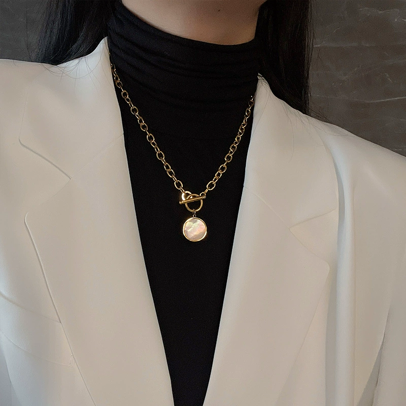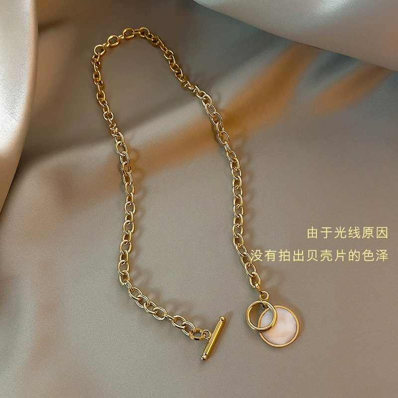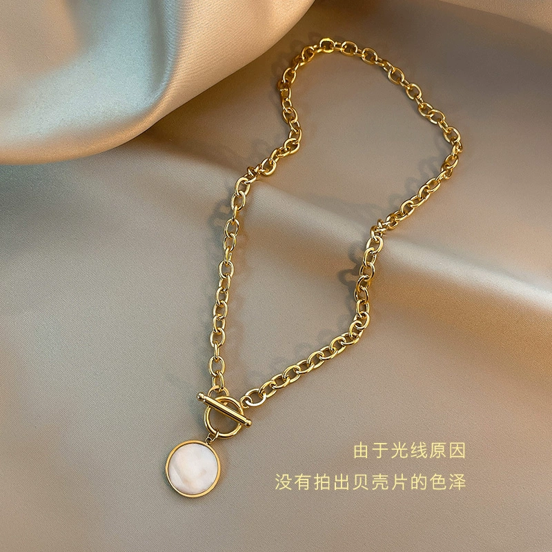 Natural shell slices high-end necklace women’s clavicle chain hip-hop style necklace light luxury temperament titanium steel European and American jewelry