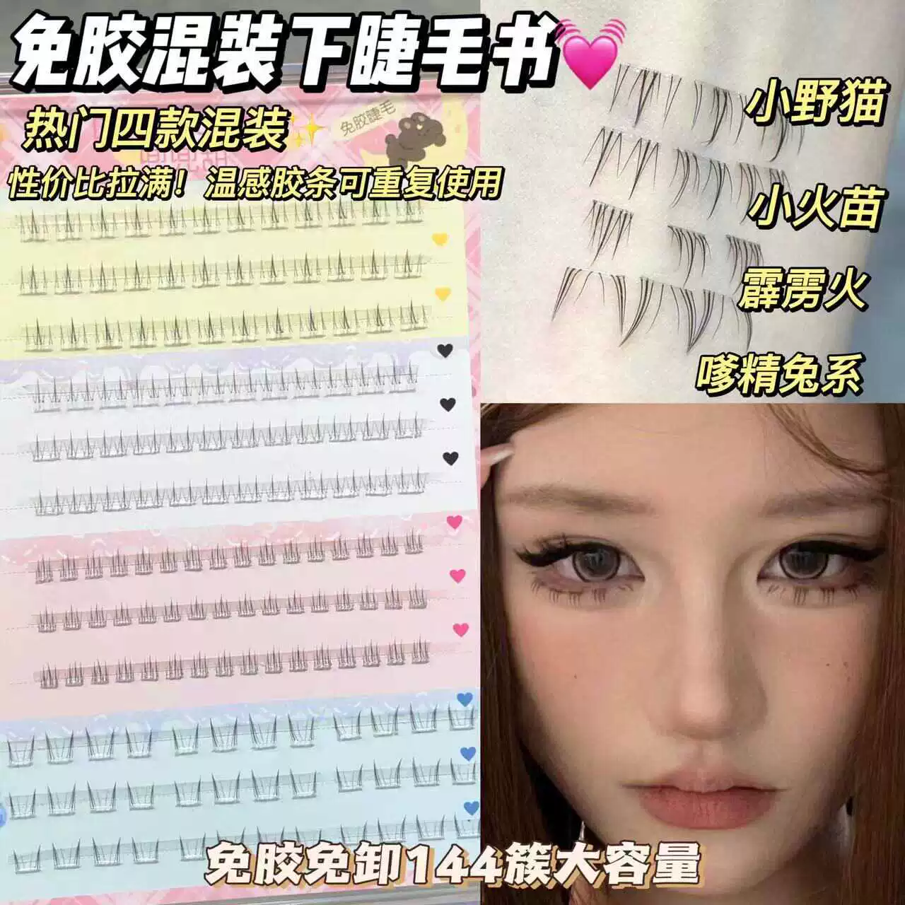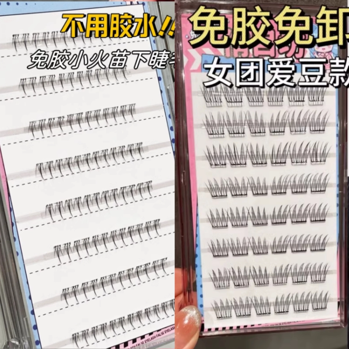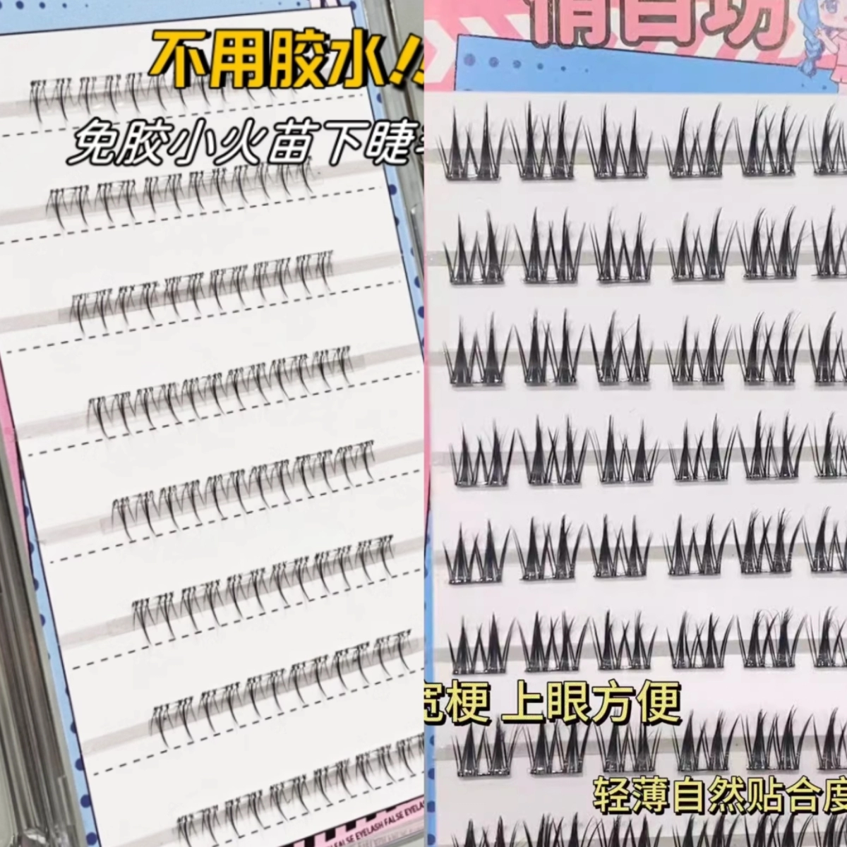 Small eyelashes combined with glue free of glue flames