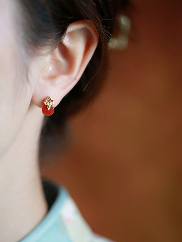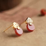 Natural southern red agate sterling silver gourd earrings for women Chinese style high-end red retro earrings earrings gift