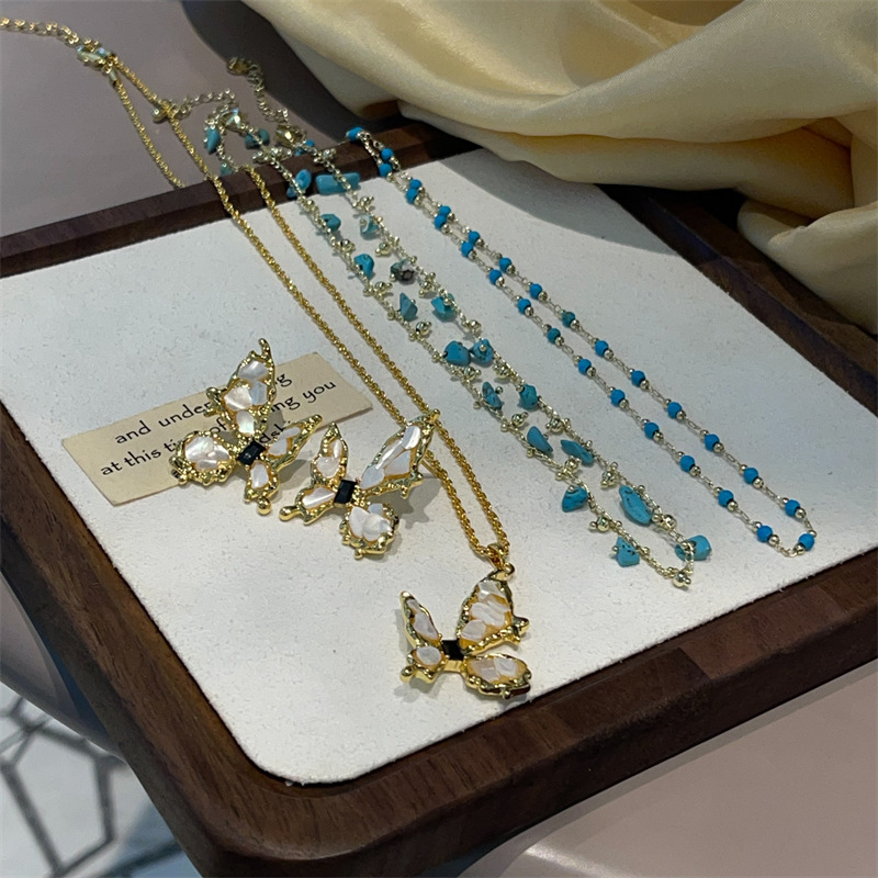 | nameOriginal | Natural Turquoise Necklace Personality 18K Real Gold Plated Real Shell Butterfly Jewelry suit High-end Ear Jewelry |