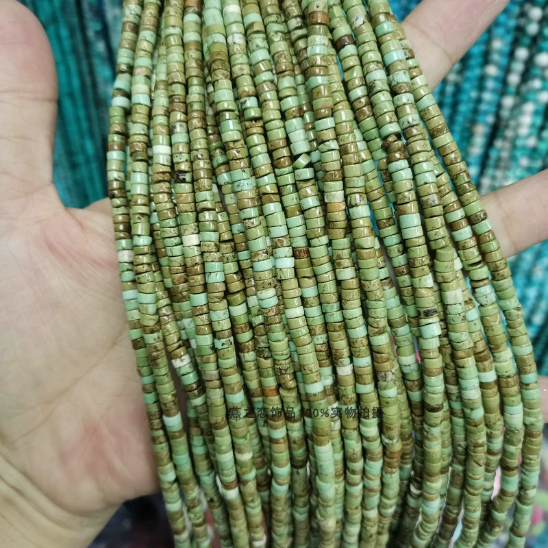 | nameOriginal | Natural turquoise small spacer 4/8mm yellow and green striped pine medium hole disc bracelet necklace earrings diy jewelry |