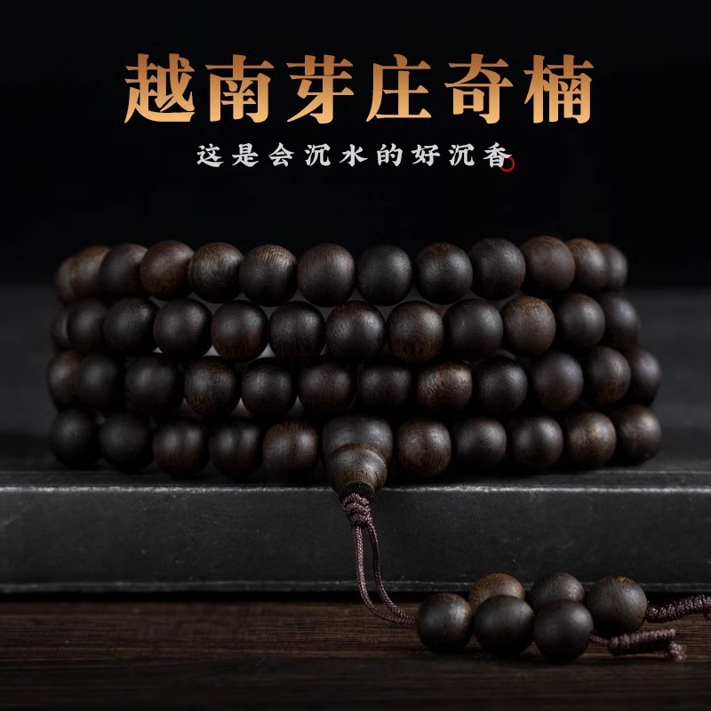Natural Vietnam Yazhuang aloes qinan bracelet 108 advanced literature play sandalwood qinan beads bracelet for men and women
