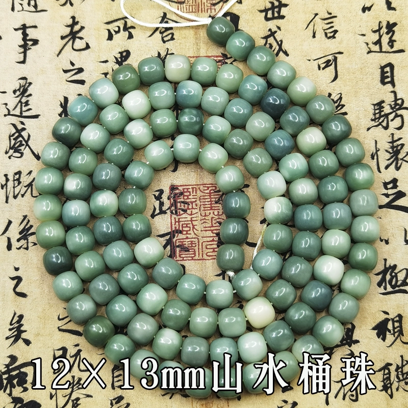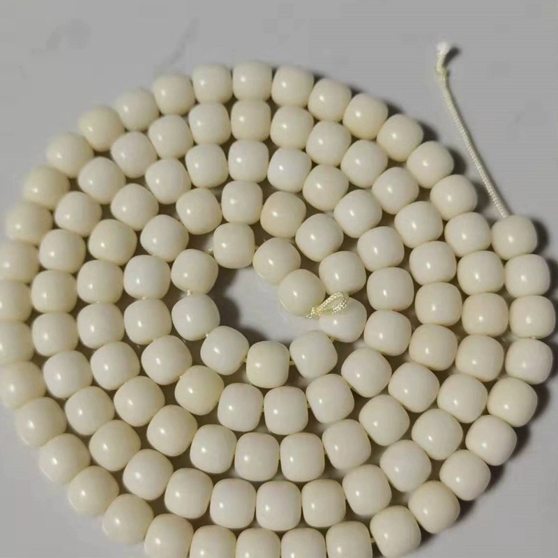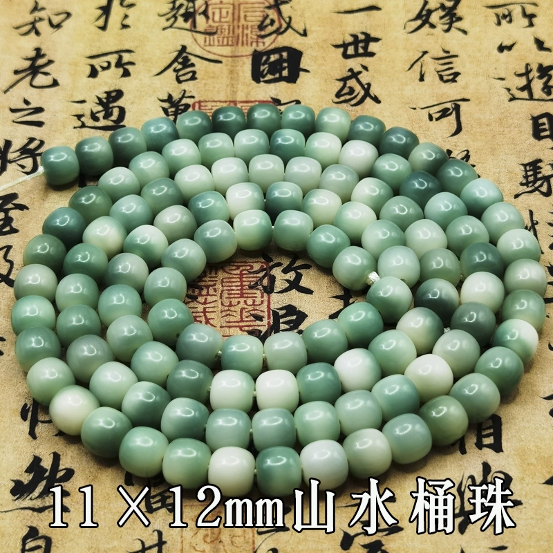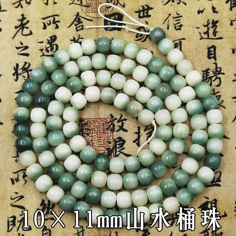 Natural weathered Yin leather barrel beads, landscape and floating flowers, 108 Buddha beads, high density white jade Bodhi bracelet, large size authentic