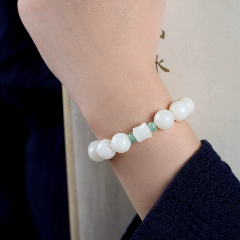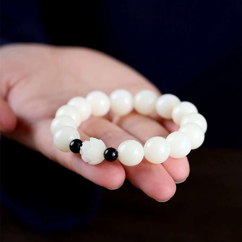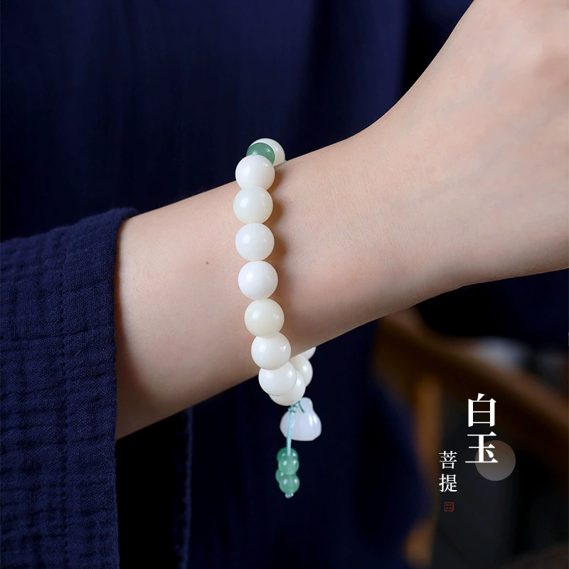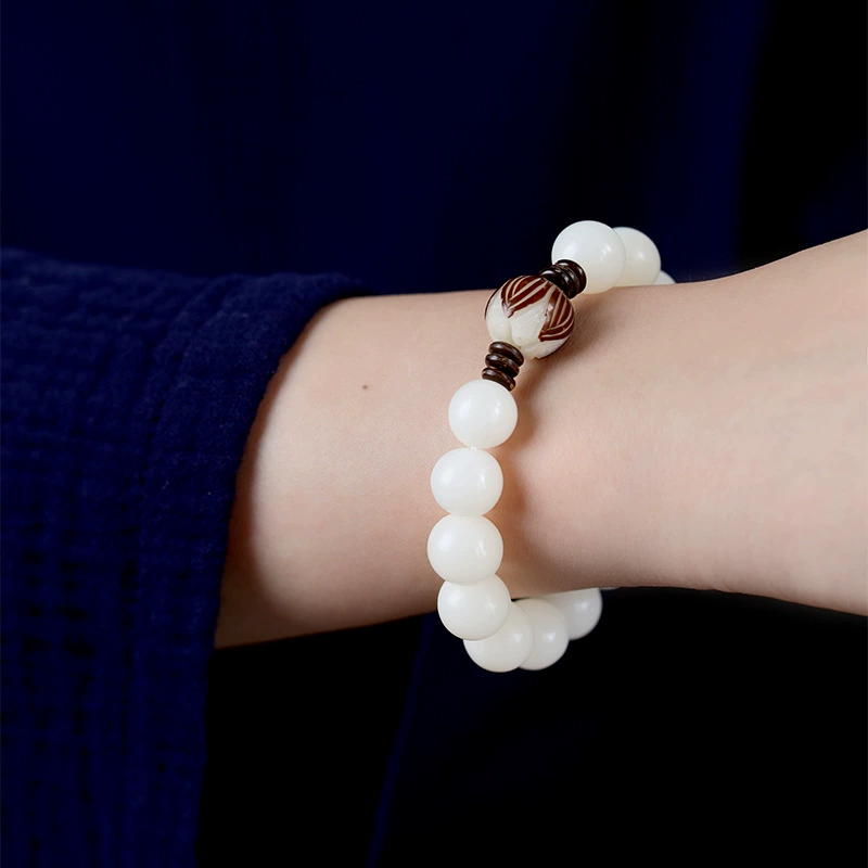 | nameOriginal | Natural White Jade Bodhi Bracelet Single Circle High Density Round Bracelet White Jade Bodhi Root Beads Hand-held Pan Play Handpiece |