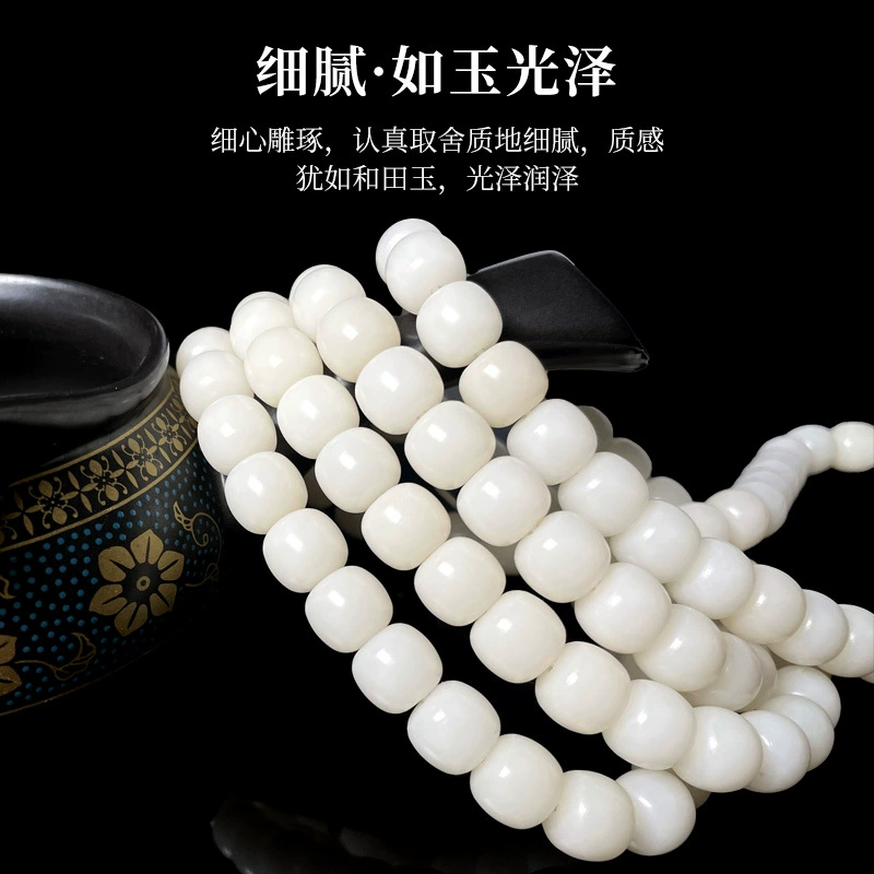 | nameOriginal | Natural white jade Bodhi root bracelet old barrel type 108 hand-held weathered barrel beads Buddha beads Bodhi seed high density bracelet |