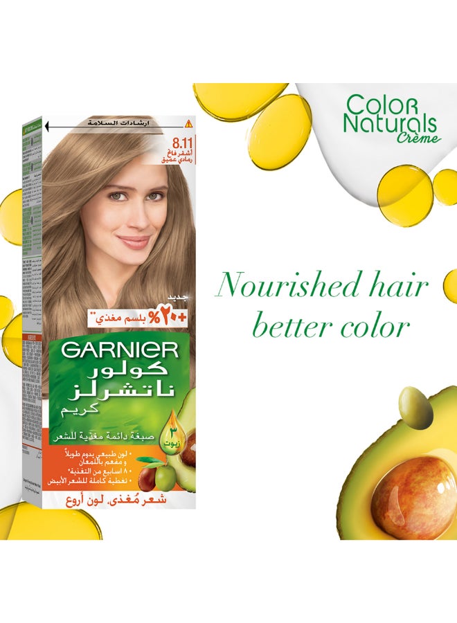 | nameOriginal | Color Naturals Permanent Hair Color Cream 8.11 Deep Ashy Light Blonde Hair Color 112ml |