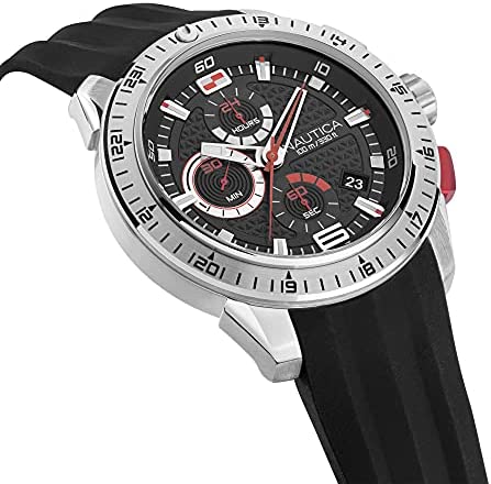 The Nautica Men’s NAPNSF109 NST 101 Grey/Black/Black Silicone Strap Watch is the perfect accessory for any modern man. With its sleek black design and durable silicone strap, this watch is both stylish and practical. The grey and black dial features easy-to-read hour markers and a date display, making it easy to keep track of time. The watch is water-resistant up to 100 meters, making it suitable for swimming and snorkeling. The black bezel adds a touch of sophistication to the overall design, making it a great choice for both casual and formal occasions. Whether you’re heading to the office or out for a night on the town, the Nautica Men’s NAPNSF109 NST 101 Grey/Black/Black Silicone Strap Watch is the perfect accessory to complete your look.