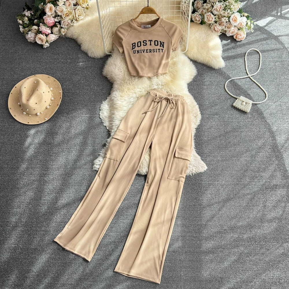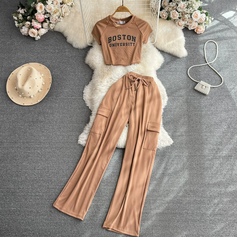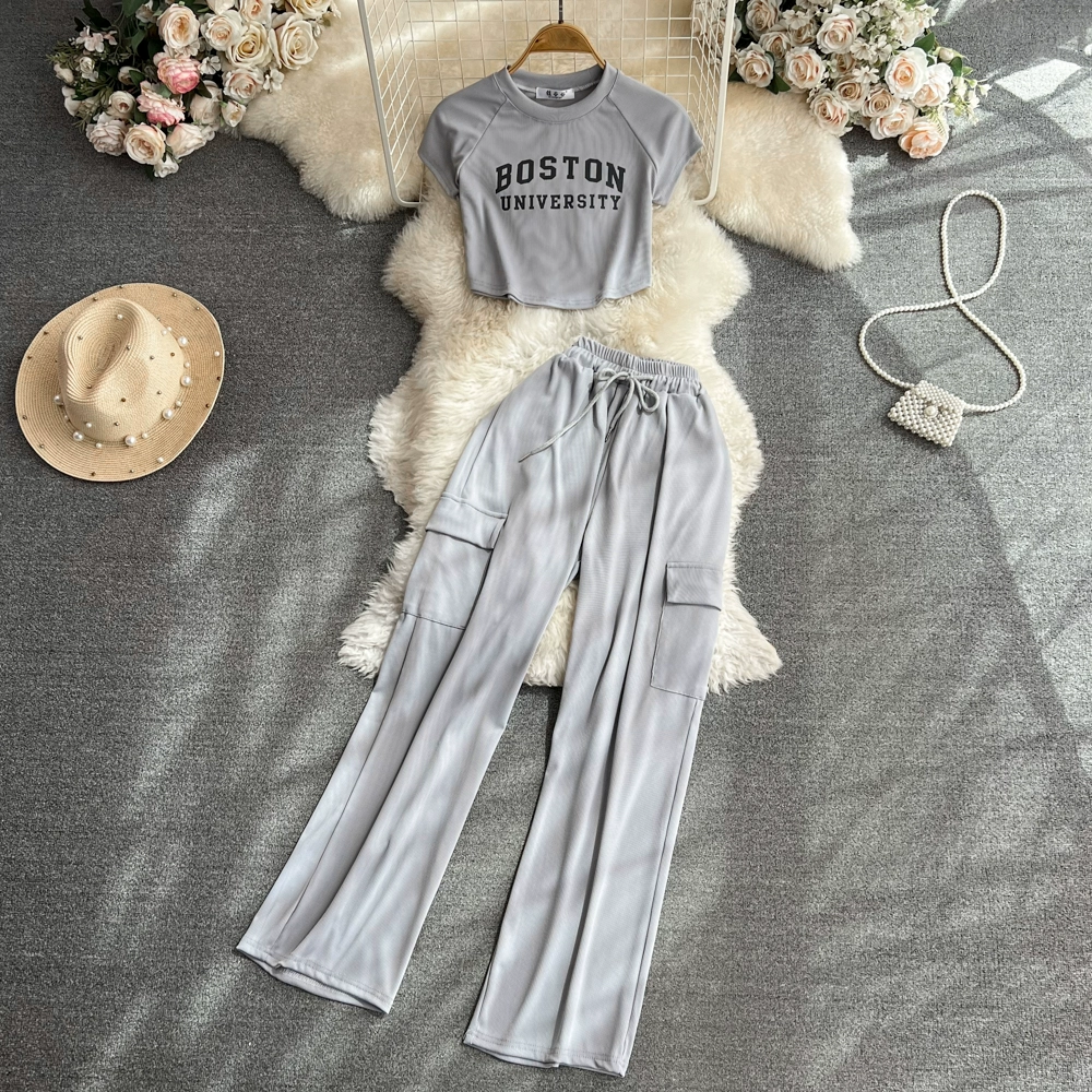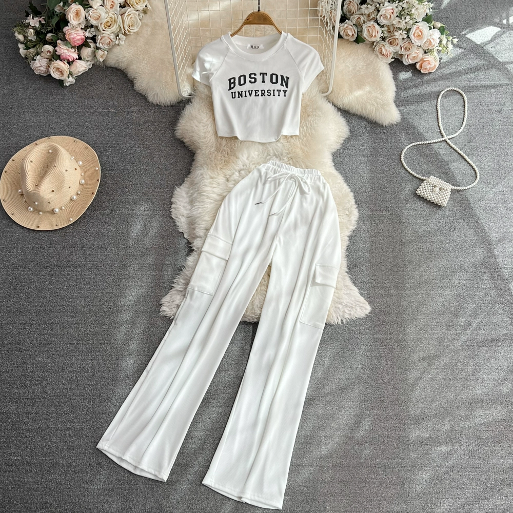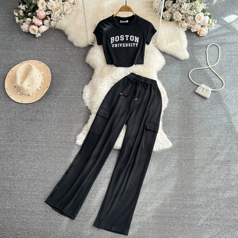 | nameOriginal | Navel-baring letter print casual trousers fashion suit |
