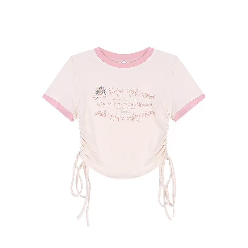 | nameOriginal | Navel-baring niche drawstring bottoming top ins short-sleeved T-shirt |