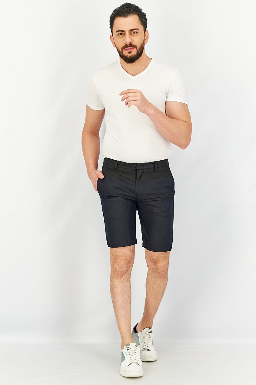 | descriptionOriginal | Care : Machine washable, Fit : Regular fit, No of pockets : 4, Size shown : International, Stretch Type : No stretch, Type of Short : Basic short, Bottom Closure : Hook and bar, Button, Disclaimer : Product color may slightly vary due to photographic lighting sources or your monitor settings., Fabrics : 56% Linen, 44% Cotton, Occasion : Casual, Pattern & Print : Colorblock, Color Family : Navy Blue, |
